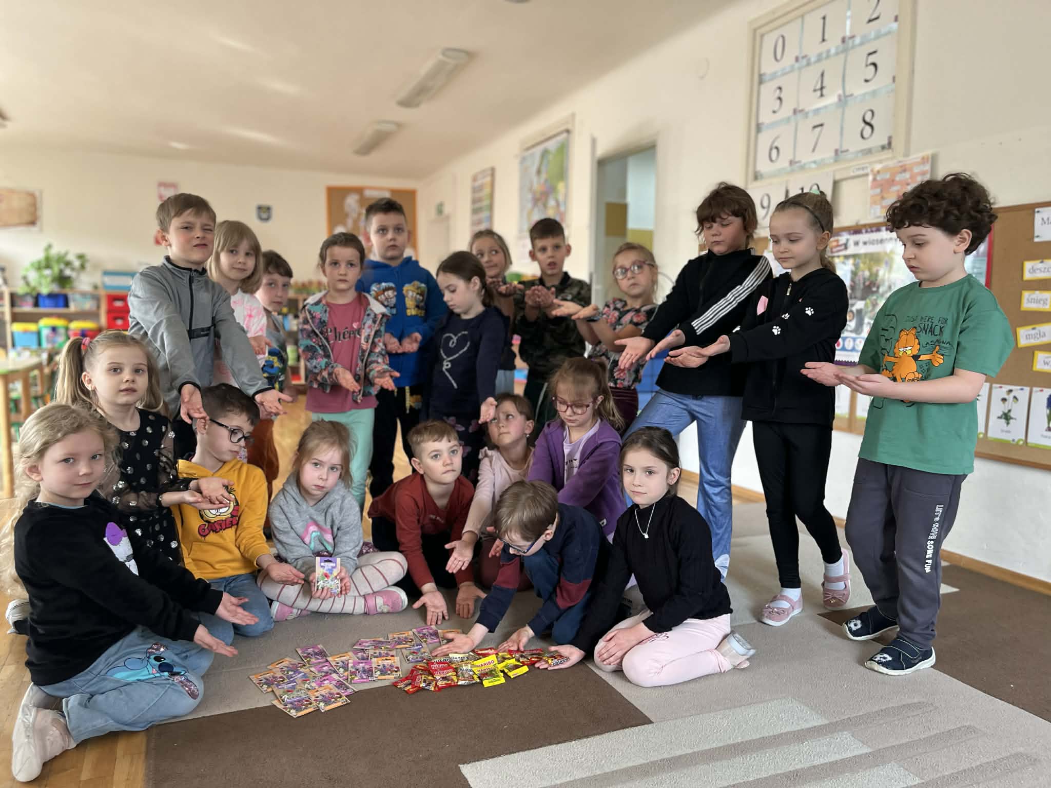 Dzieci otrzymały małe słodkości oraz wyjątkowe upominki w postaci nasionek kwiatów, które będą mogły wspólnie zasiać i obserwować, jak rosną wraz z nadchodzącą wiosną. Gest ten sprawił przedszkolakom ogromną radość i stał się idealnym dopełnieniem tego inspirującego spotkania. Bardzo dziękujemy mamie Juliana za poświęcony czas, wspólnie spędzone chwile oraz za te pełne ciepła prezenty, które wywołały uśmiechy na wszystkich buziach.