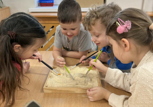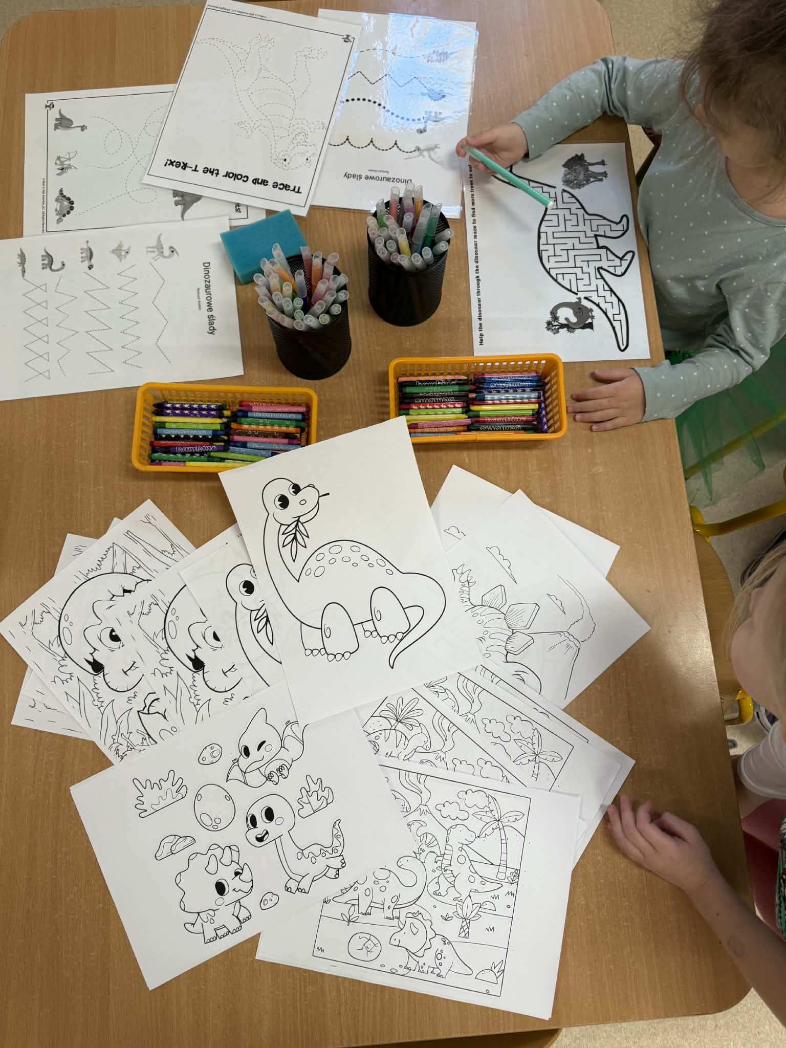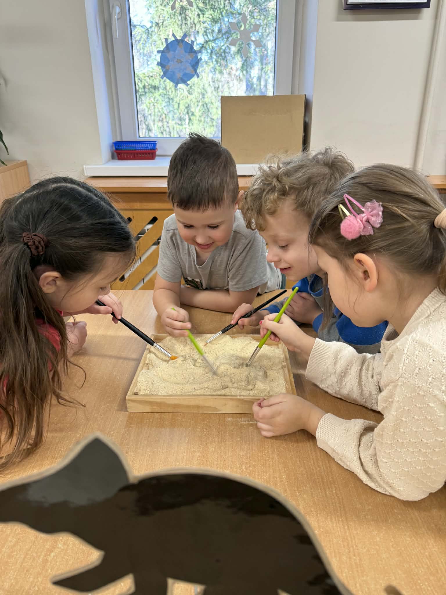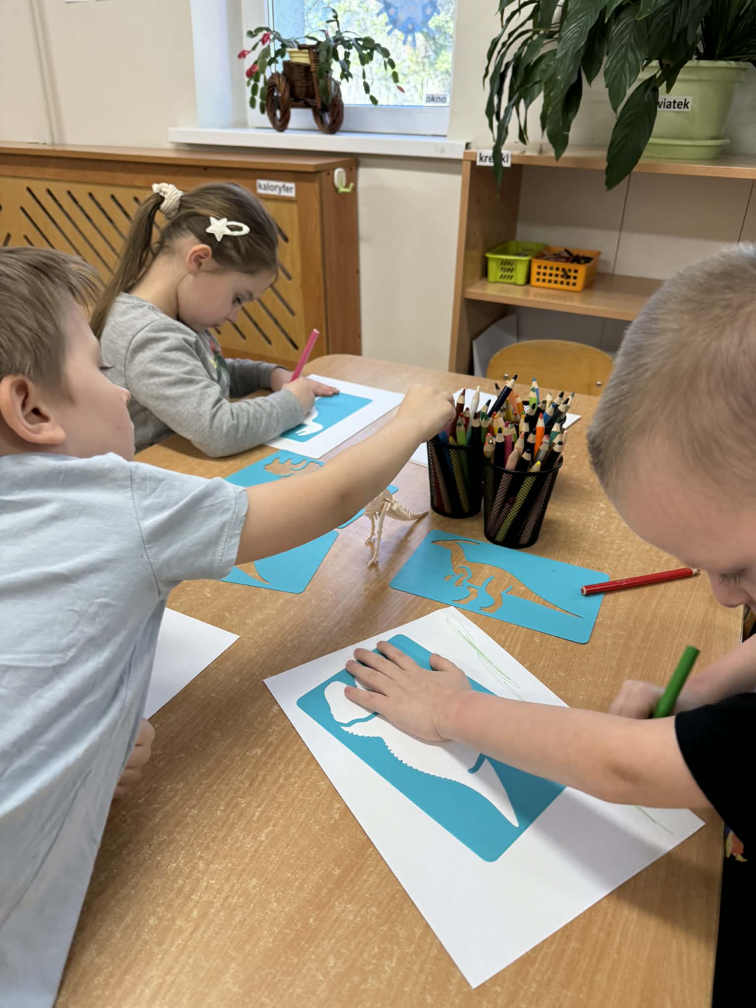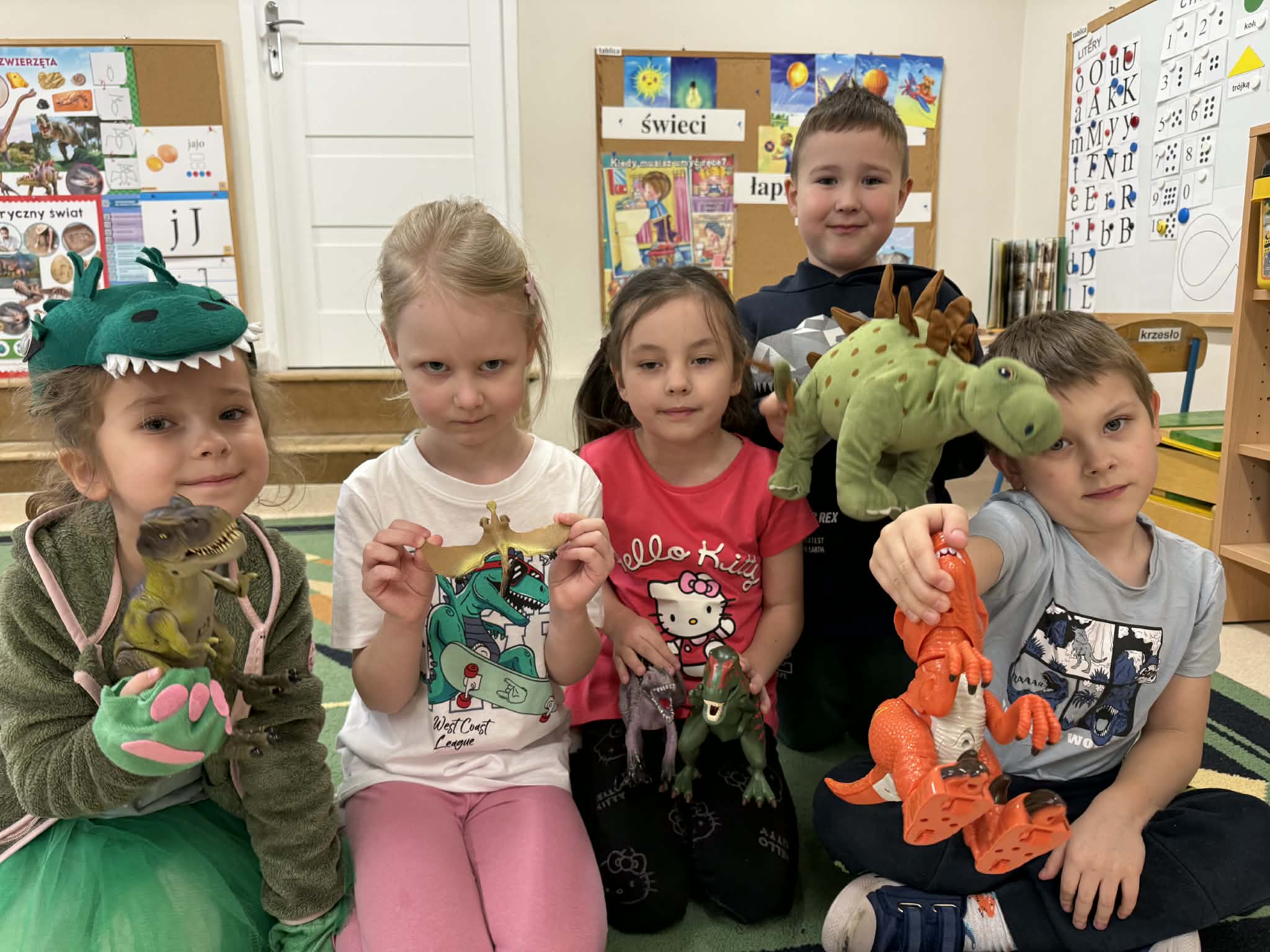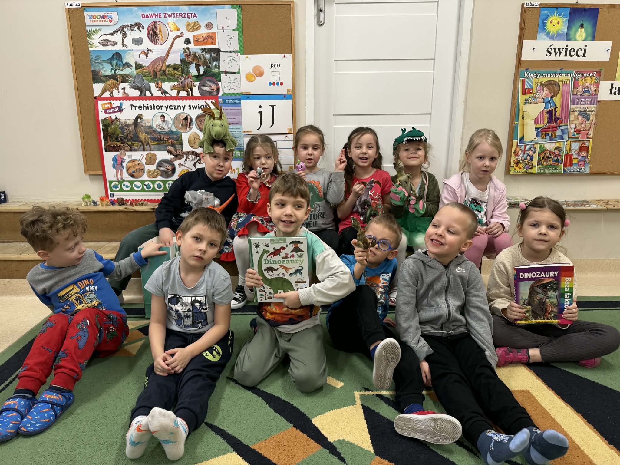 26 lutego w grupie „Jabłcusie” obchodziliśmy Dzień Dinozaura. Dzieci obejrzały krótkie filmy o dinozaurach i prehistorycznym świecie, a następnie brały udział w zabawach sensorycznych z lodem, w którym ukryte były „prehistoryczne skarby”. W kąciku czytelniczym przedszkolaki poznawały różne gatunki dinozaurów, a w strefie sensorycznej wcielały się w małych paleontologów, odkopując „kości” w piasku i tworząc własne skamieliny. Nie zabrakło także prac plastycznych, zabaw z kodowaniem oraz aktywności ruchowych, takich jak ścieżka „śladami dinozaura” i budowanie dinozaurzych gniazd. Był to dzień pełen radości, ciekawych odkryć i wspaniałej zabawy.