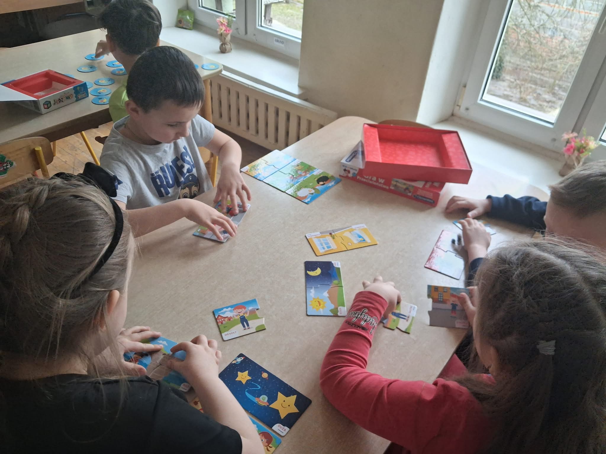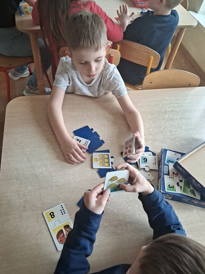 Dzieci miały okazję rozwijać swoje umiejętności logicznego myślenia poprzez różnorodne, angażujące aktywności. Układały puzzle, które ćwiczyły spostrzegawczość i cierpliwość, uczyły się zasad gry w domino, a także brały udział w ciekawych zabawach matematycznych dostosowanych do ich wieku.