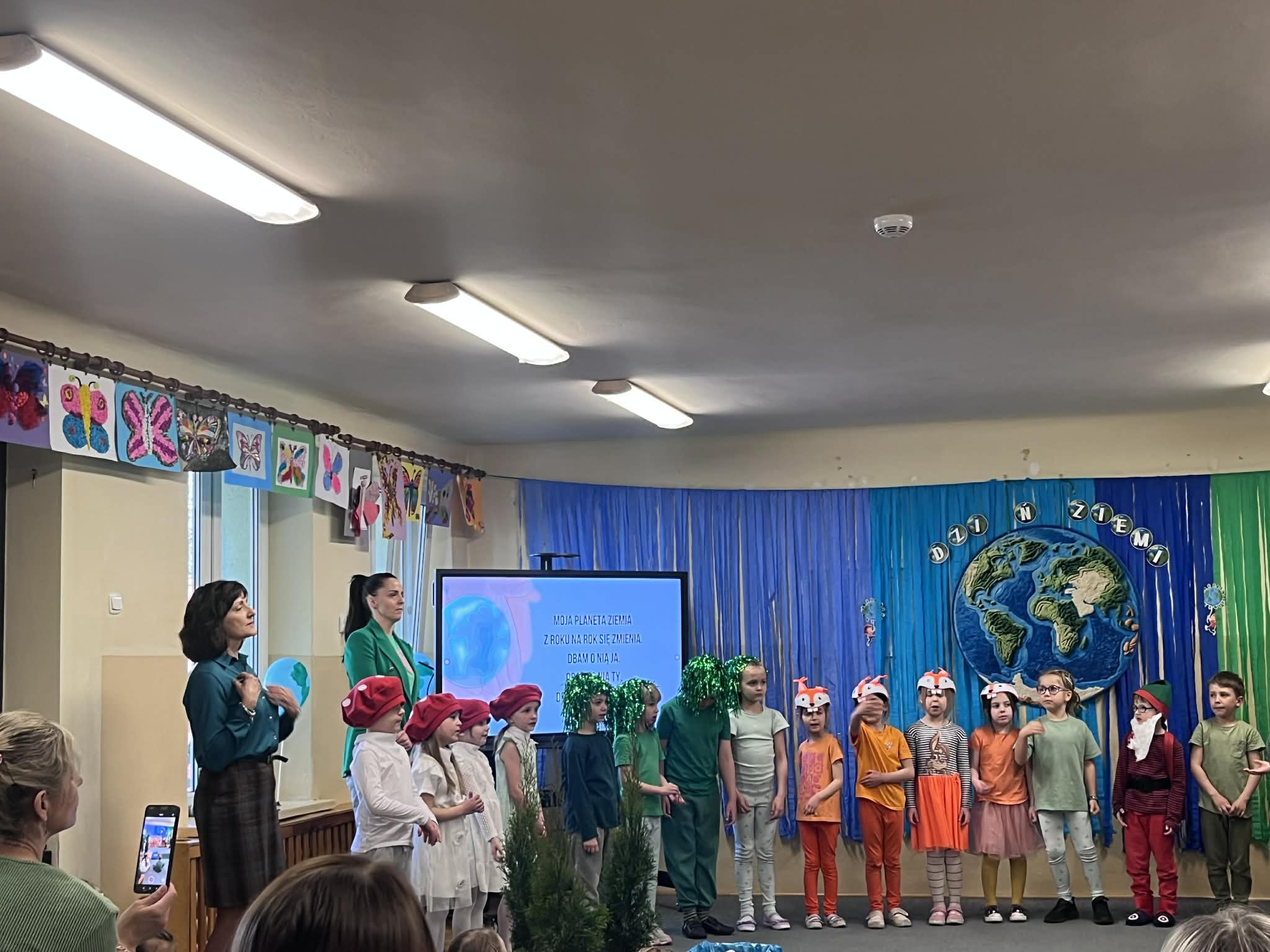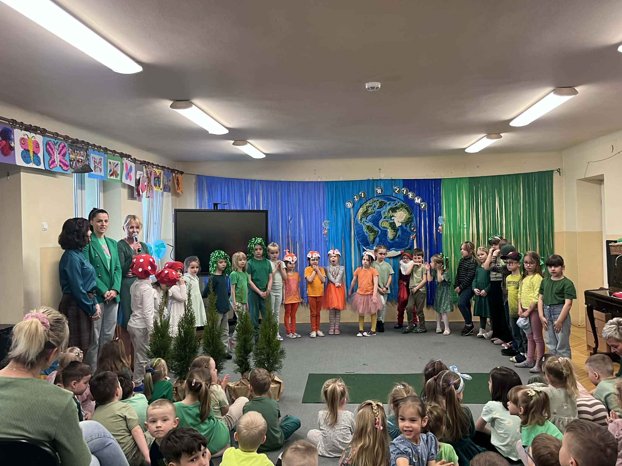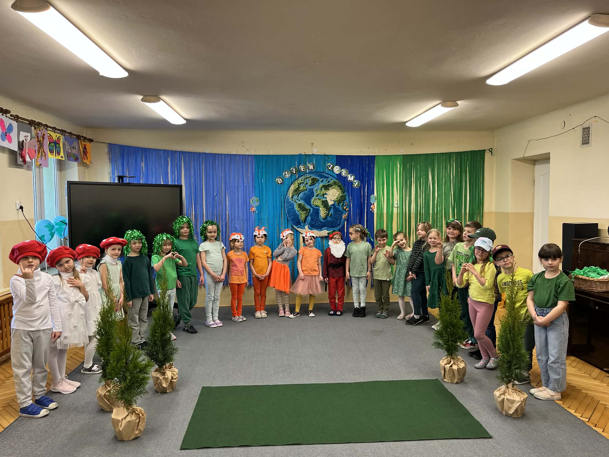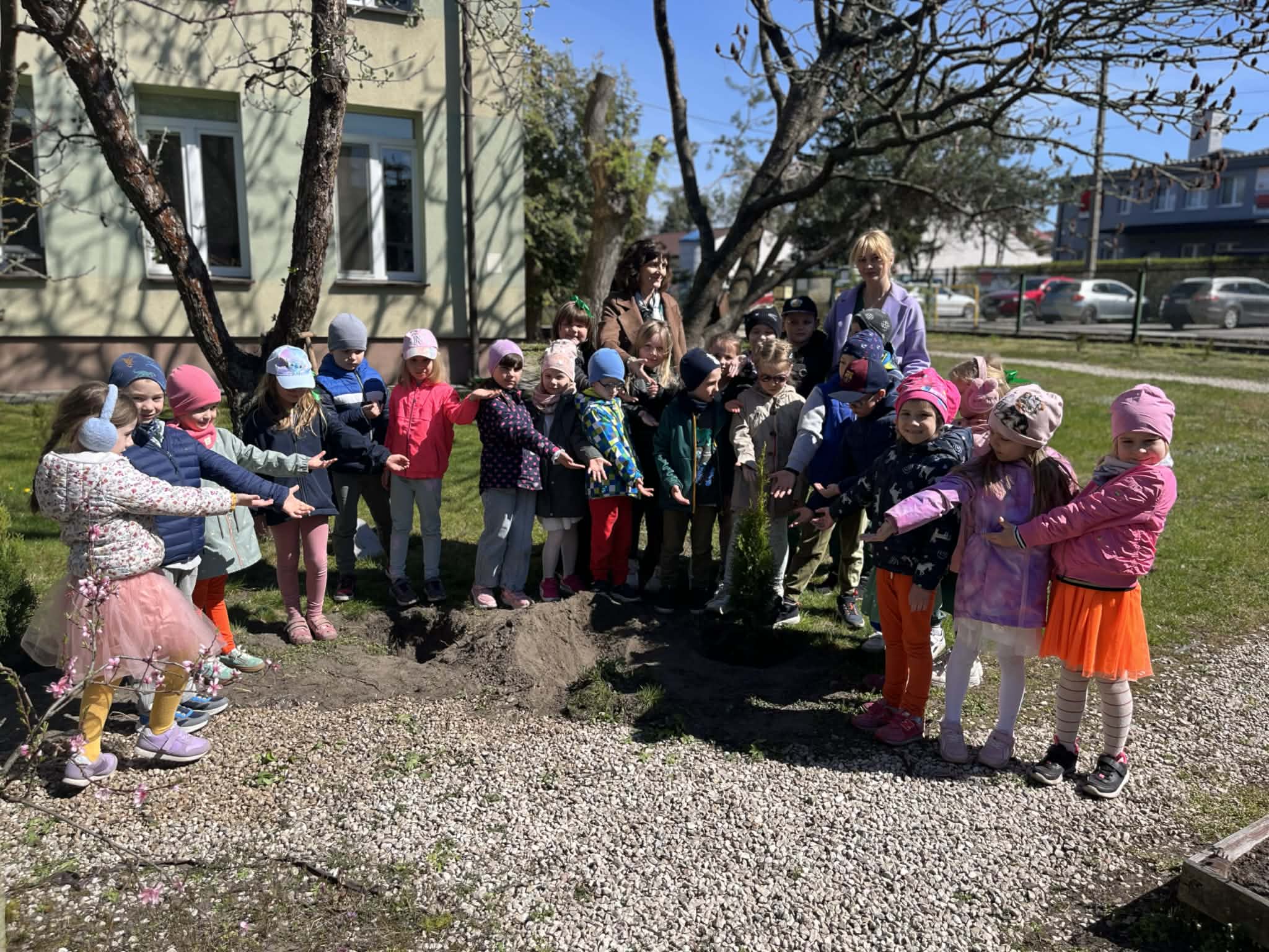 Tegoroczny Dzień Ziemi upłynął nam w wyjątkowej atmosferze, a wszystko za sprawą grupy Delfinków. Starszaki przygotowały wzruszający program artystyczny – poprzez piękne wiersze i piosenki pokazały nam, jak na co dzień dbać o środowisko i być wrażliwym na potrzeby natury. Ważnym punktem dnia był film edukacyjny, po którym wszystkie przedszkolaki złożyły uroczystą obietnicę, że będą wspólnie troszczyć się o porządek na naszej planecie. Na pamiątkę tego wydarzenia każda grupa otrzymała własne drzewko. Rośliny zostały posadzone w naszym ogrodzie, gdzie dzieci będą mogły je pielęgnować i obserwować, jak rosną razem z nimi. To była piękna lekcja odpowiedzialności, która zostanie z nami na lata!