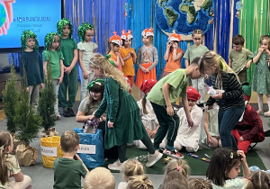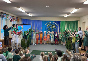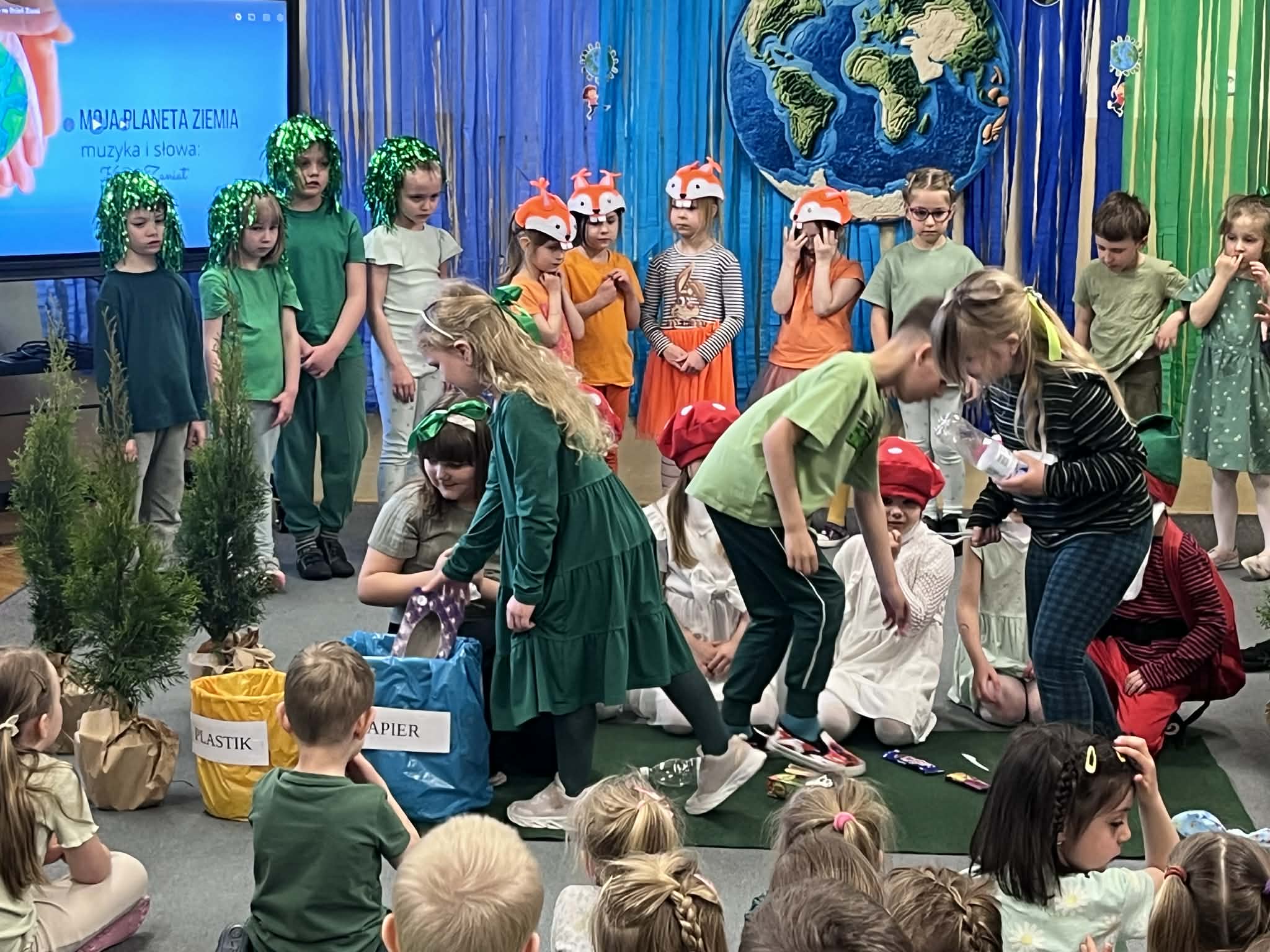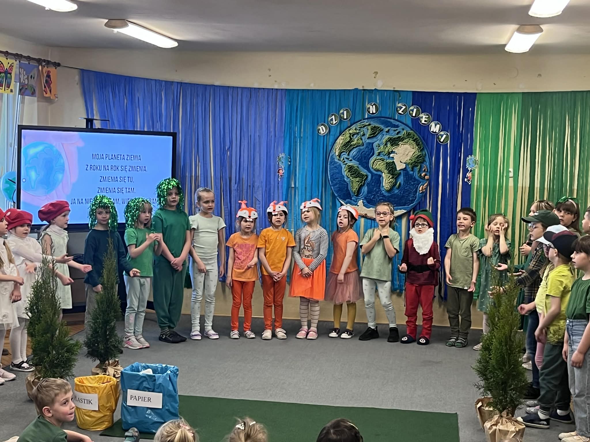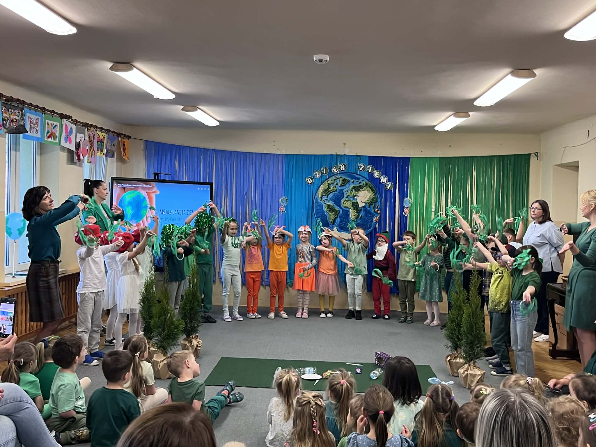 Tegoroczny Dzień Ziemi upłynął nam w wyjątkowej atmosferze, a wszystko za sprawą grupy Delfinków. Starszaki przygotowały wzruszający program artystyczny – poprzez piękne wiersze i piosenki pokazały nam, jak na co dzień dbać o środowisko i być wrażliwym na potrzeby natury. Ważnym punktem dnia był film edukacyjny, po którym wszystkie przedszkolaki złożyły uroczystą obietnicę, że będą wspólnie troszczyć się o porządek na naszej planecie. Na pamiątkę tego wydarzenia każda grupa otrzymała własne drzewko. Rośliny zostały posadzone w naszym ogrodzie, gdzie dzieci będą mogły je pielęgnować i obserwować, jak rosną razem z nimi. To była piękna lekcja odpowiedzialności, która zostanie z nami na lata!