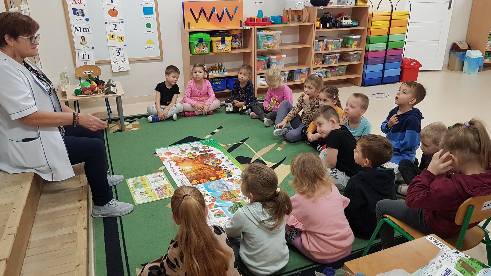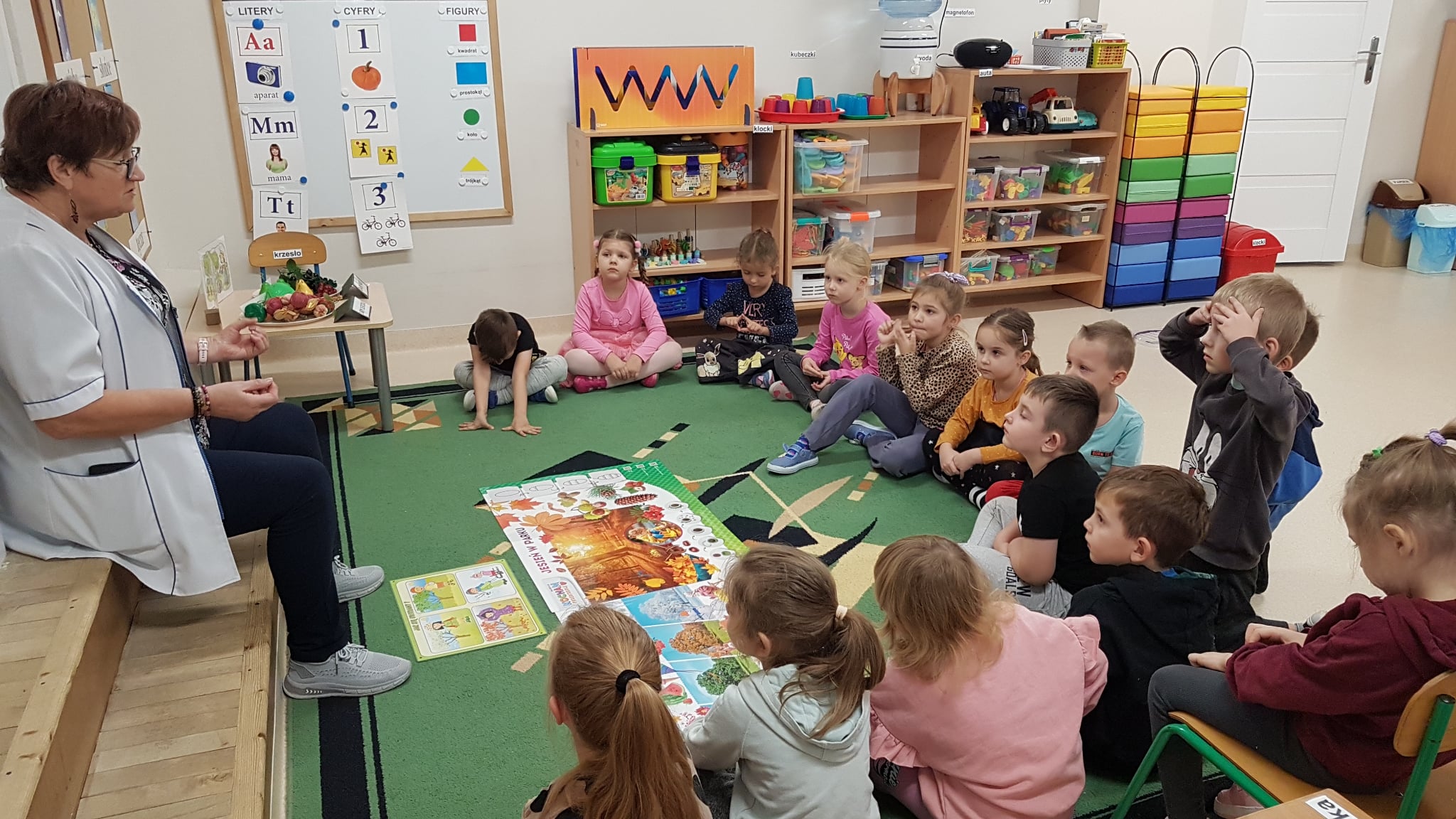 Dziś naszą grupę odwiedziła Pani Pielęgniarka, która przeprowadziła z dziećmi bardzo ważne zajęcia profilaktyczne. Głównym tematem było ubieranie się „na cebulkę”. Pani Pielęgniarka w ciekawy sposób wytłumaczyła przedszkolakom, dlaczego kilka warstw ubrań chroni nas lepiej niż jedna gruba kurtka i kiedy warto zrzucić jedną warstwę, by się nie przegrzać. Teraz nasze „Jabłcusie” to prawdziwi eksperci od zimowej garderoby! Dbamy o zdrowie i hartujemy się z głową!
