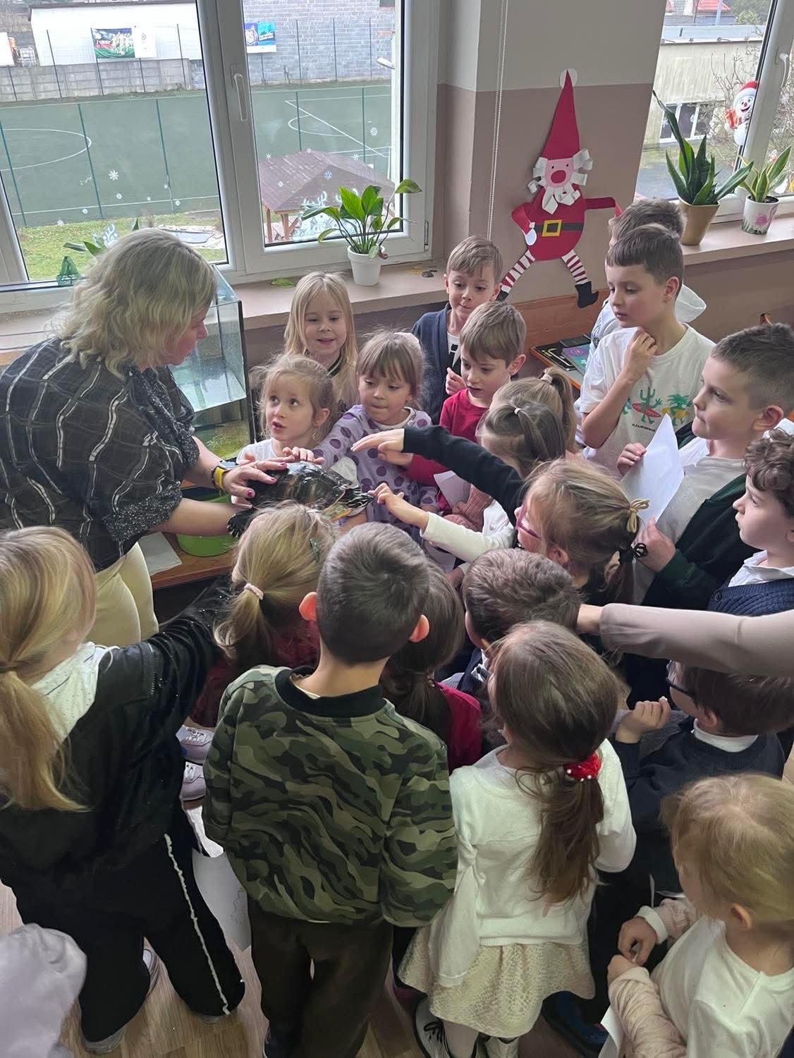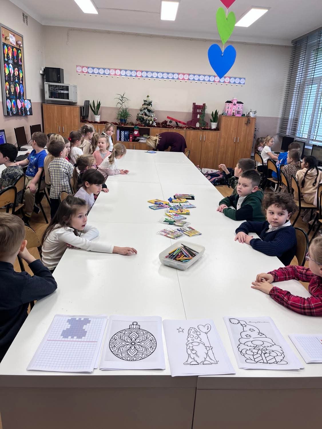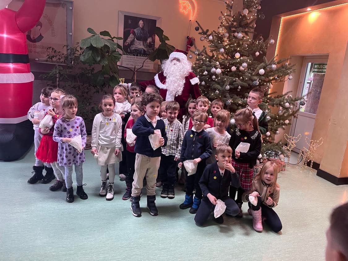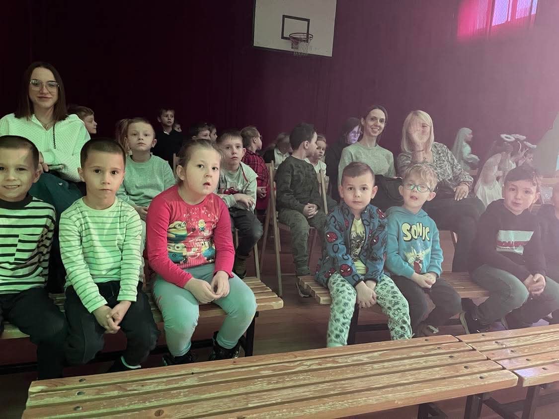 Grupy Delfinki i Wiewiórki odwiedziły Szkołę Podstawową nr 1. Dzieci obejrzały jasełka oraz zwiedziły budynek szkoły, poznając jej sale i przestrzeń. Podczas wizyty zostały oprowadzone oraz wysłuchały informacji na temat nauki i życia szkolnego. Wyjście było wartościowym doświadczeniem, wspierającym dzieci w przygotowaniu do rozpoczęcia edukacji szkolnej.
