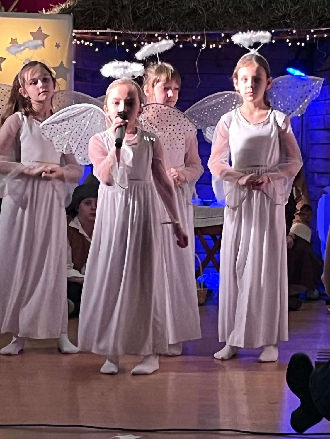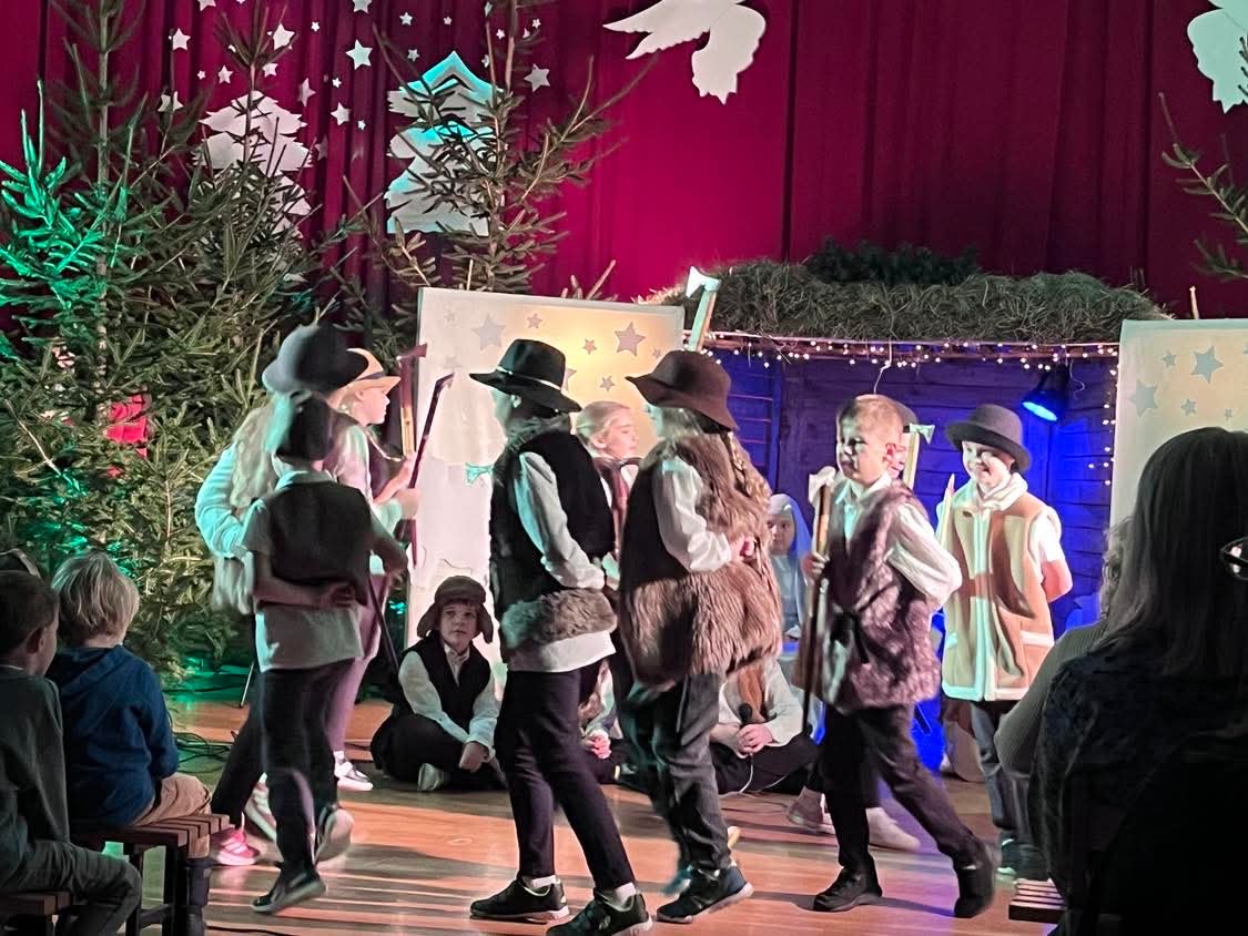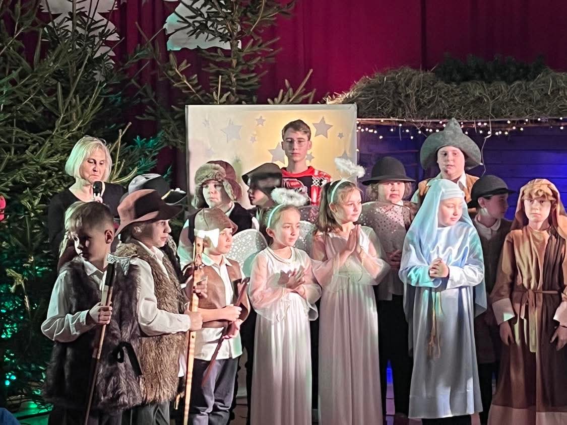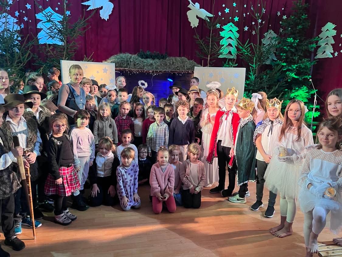 Grupy Delfinki i Wiewiórki odwiedziły Szkołę Podstawową nr 1. Dzieci obejrzały jasełka oraz zwiedziły budynek szkoły, poznając jej sale i przestrzeń. Podczas wizyty zostały oprowadzone oraz wysłuchały informacji na temat nauki i życia szkolnego. Wyjście było wartościowym doświadczeniem, wspierającym dzieci w przygotowaniu do rozpoczęcia edukacji szkolnej.