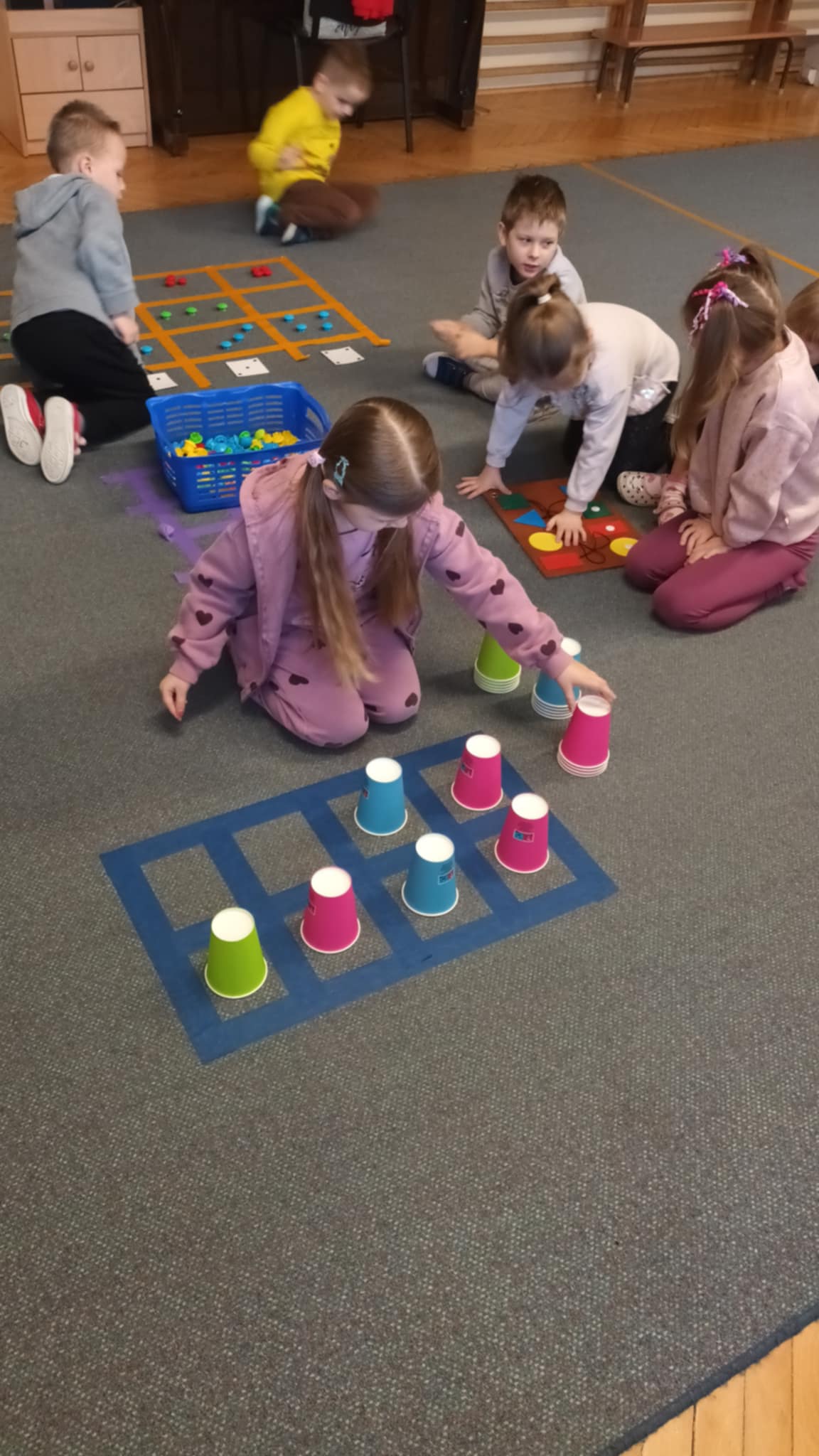 Grupa „Jabłcusie” spędziła dziś niezwykle ciekawy czas na wspólnej zabawie z kodowaniem na dywanie. Poprzez układanie kolorowych wzorów i rozwiązywanie logicznych zagadek, dzieci uczyły się planowania oraz współpracy w zespole. Ta forma aktywności to dla naszych przedszkolaków doskonałe połączenie nauki z radosną zabawą, która rozwija wyobraźnię i umiejętność logicznego myślenia.