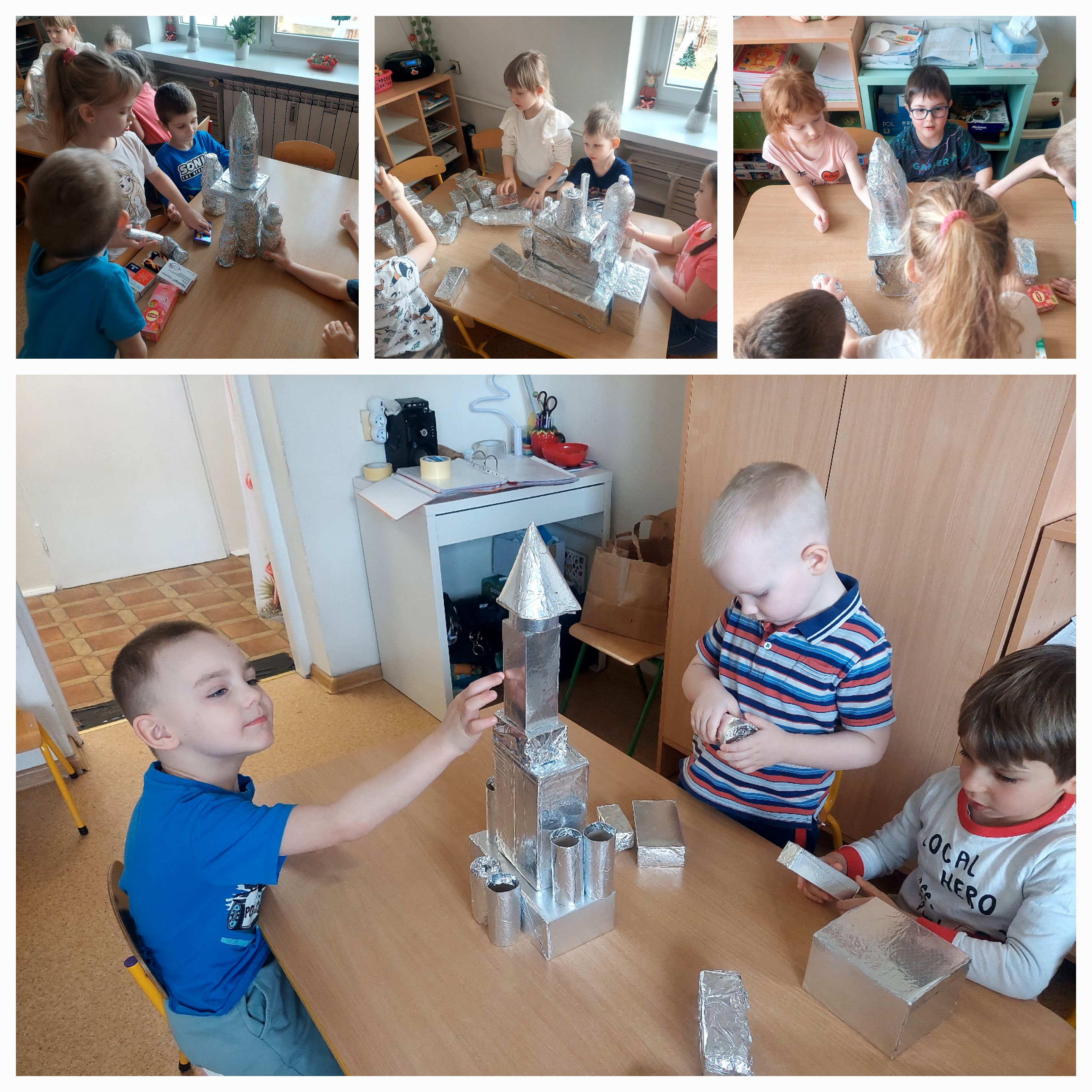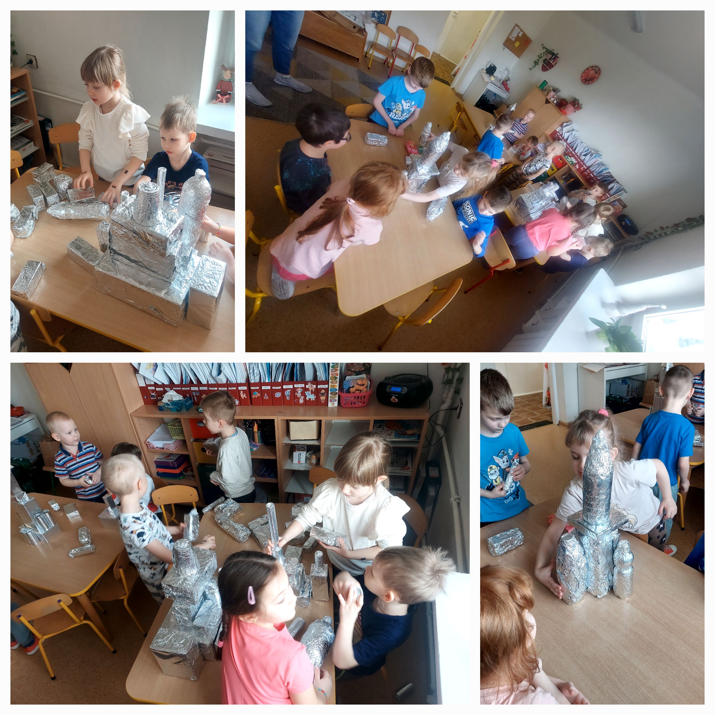 Podczas zajęć w naszej grupie dzieci dzieci zmieniły się w małych konstruktorów i wspólnie z dużym zaangażowaniem budowały kosmiczne rakiety z kartonowych pudełek, rozwijając przy tym wyobraźnię oraz zdolności manualne.