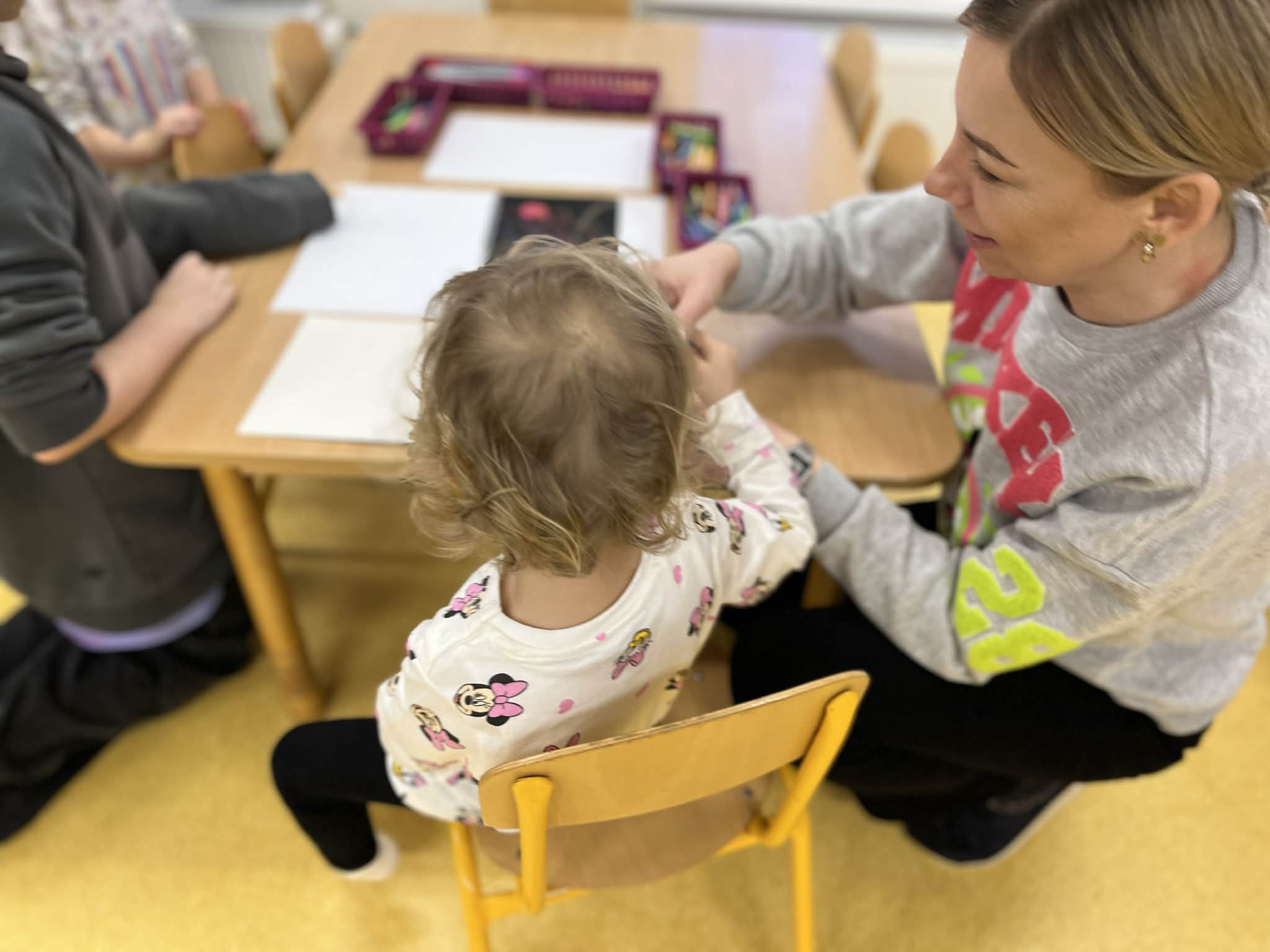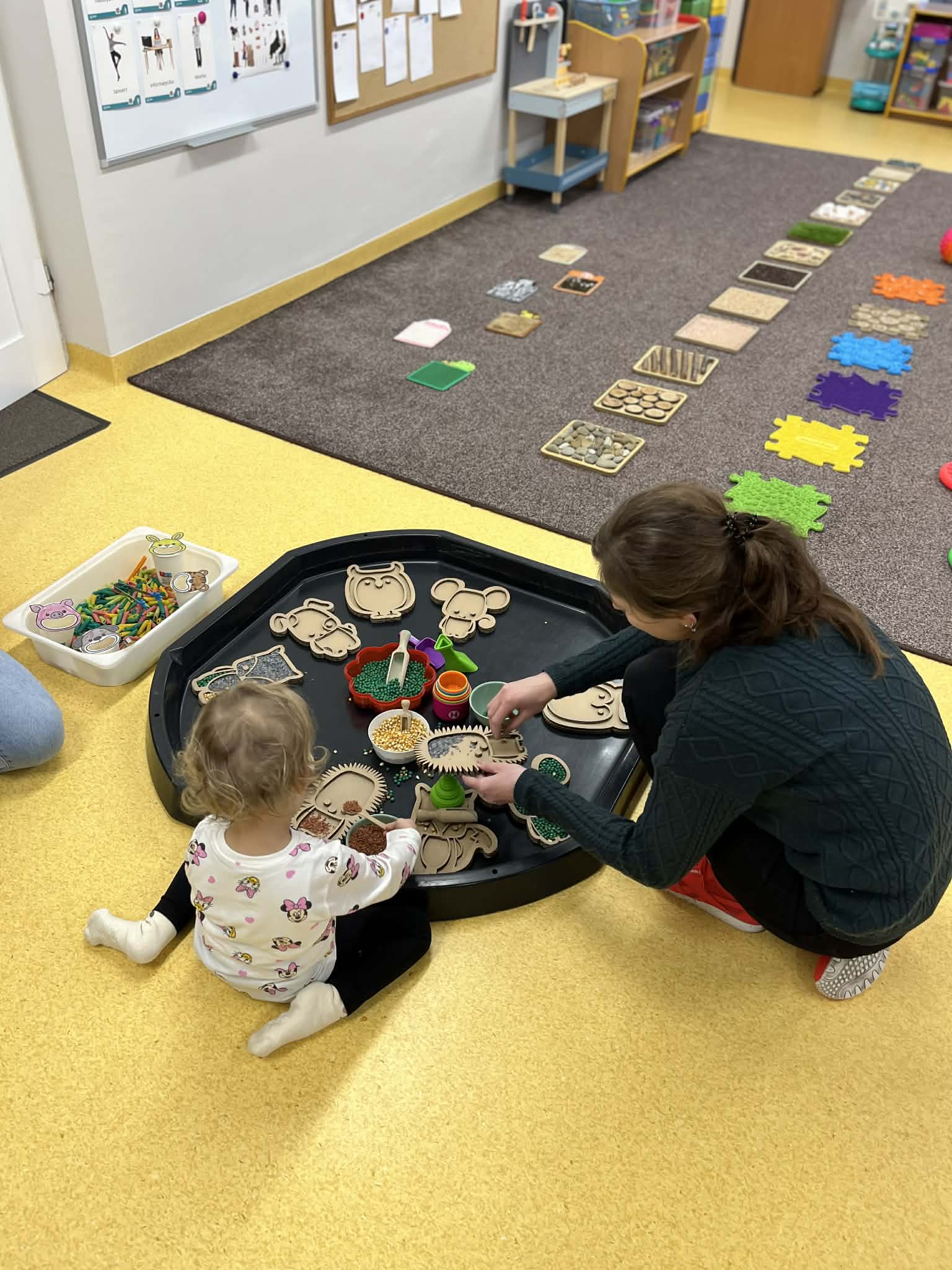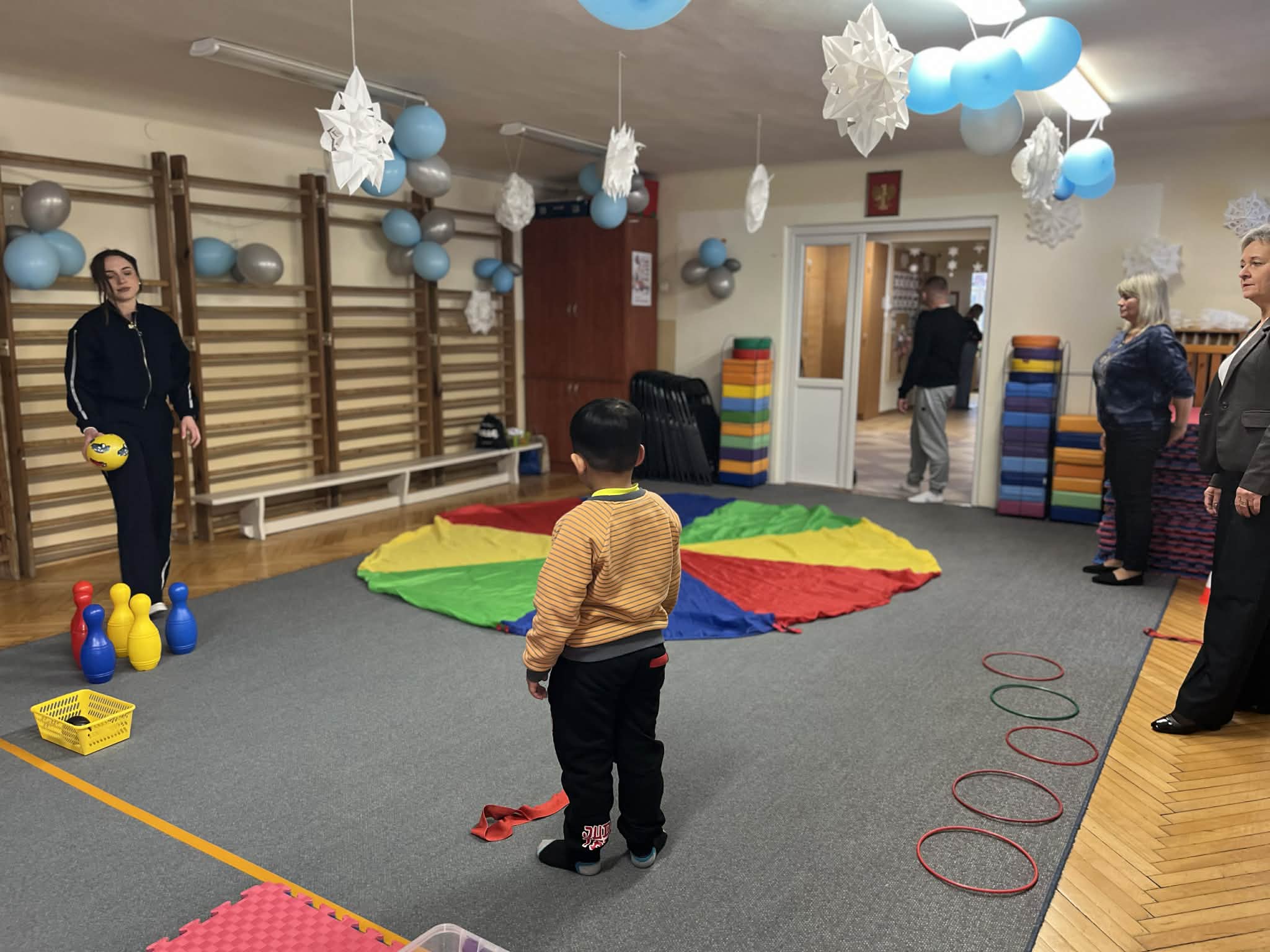 W salach dydaktycznych przygotowano fascynujące zabawy sensoryczne oraz kolorowy kącik plastyczny, gdzie dzieci mogły wykazać się swoją kreatywnością. Zainteresowaniem cieszyła się również sala gimnastyczna, na której zorganizowano kącik ruchowy oraz nowoczesne kodowanie na dywanie. Poza wspólną zabawą rodzice wraz z dziećmi mieli możliwość swobodnego zwiedzenia całej placówki i zajrzenia w każdy jej zakamarek. To popołudnie było pełne wielkich emocji zarówno dla małych kandydatów na przedszkolaków, jak i dla całej naszej społeczności przedszkolnej. Dziękujemy wszystkim za wspólnie spędzony czas i do zobaczenia wkrótce.