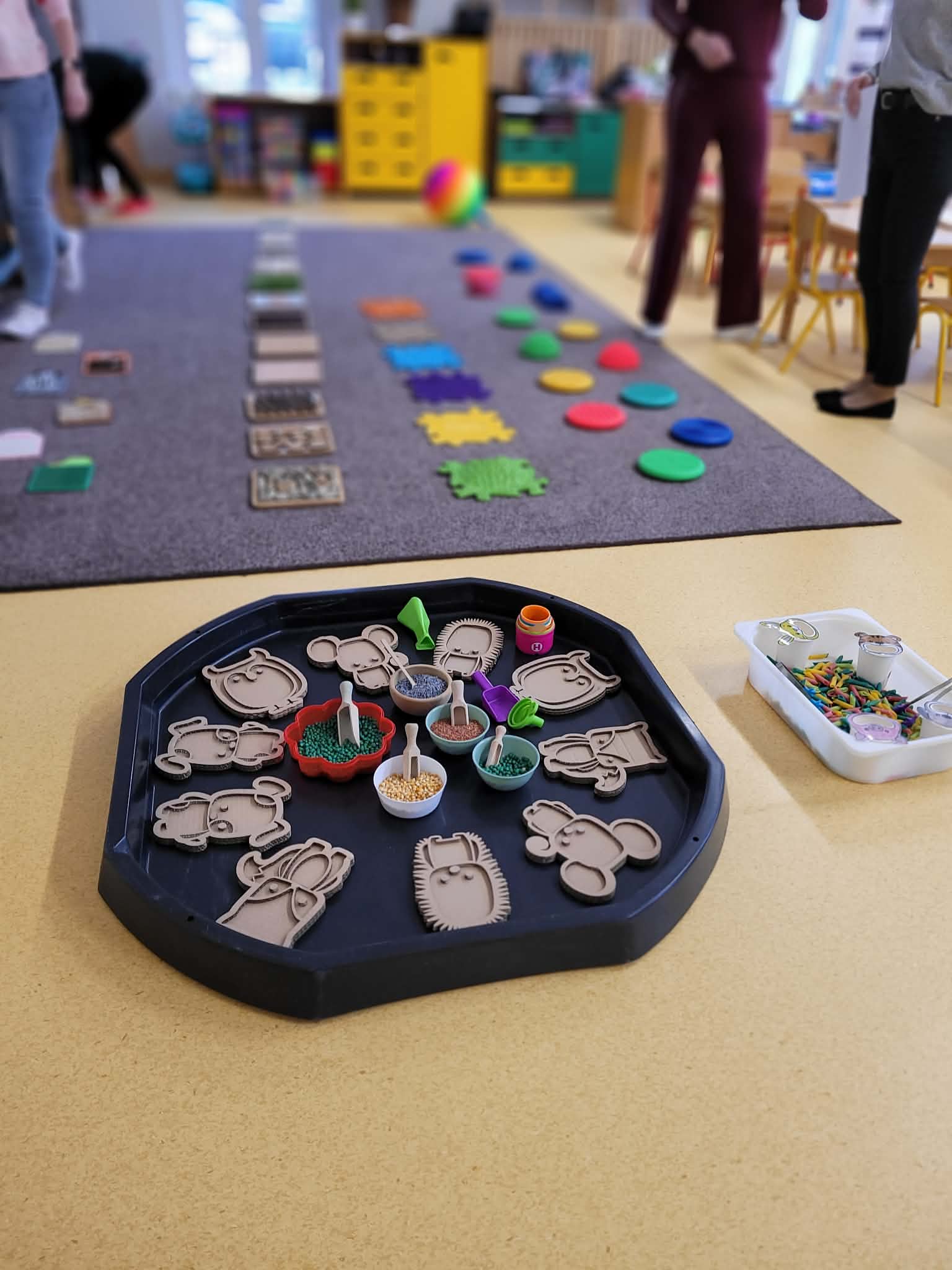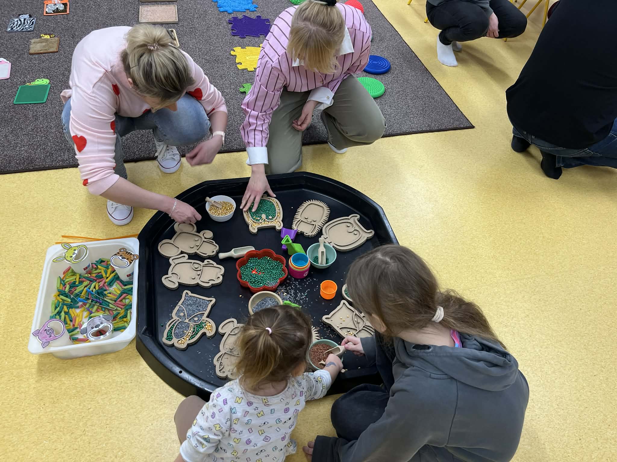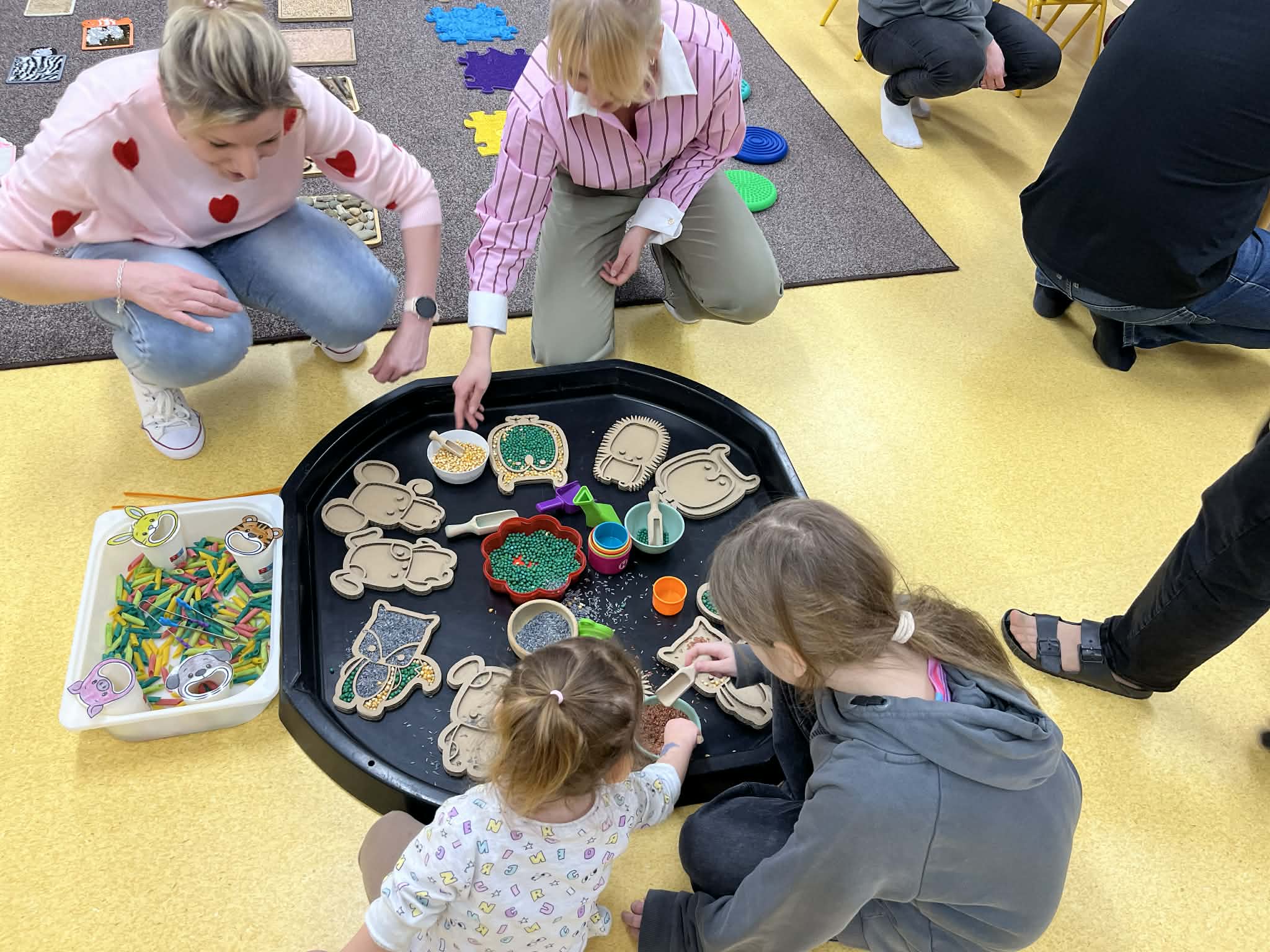 W salach dydaktycznych przygotowano fascynujące zabawy sensoryczne oraz kolorowy kącik plastyczny, gdzie dzieci mogły wykazać się swoją kreatywnością. Zainteresowaniem cieszyła się również sala gimnastyczna, na której zorganizowano kącik ruchowy oraz nowoczesne kodowanie na dywanie. Poza wspólną zabawą rodzice wraz z dziećmi mieli możliwość swobodnego zwiedzenia całej placówki i zajrzenia w każdy jej zakamarek. To popołudnie było pełne wielkich emocji zarówno dla małych kandydatów na przedszkolaków, jak i dla całej naszej społeczności przedszkolnej. Dziękujemy wszystkim za wspólnie spędzony czas i do zobaczenia wkrótce.