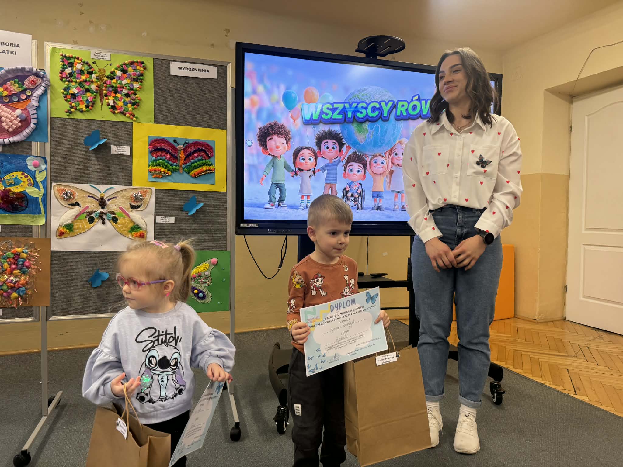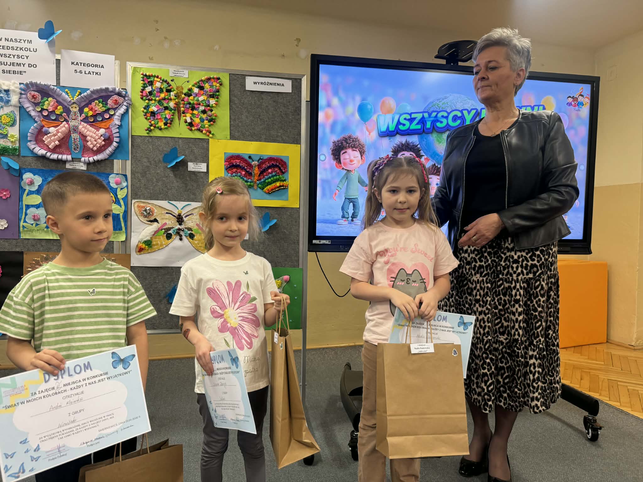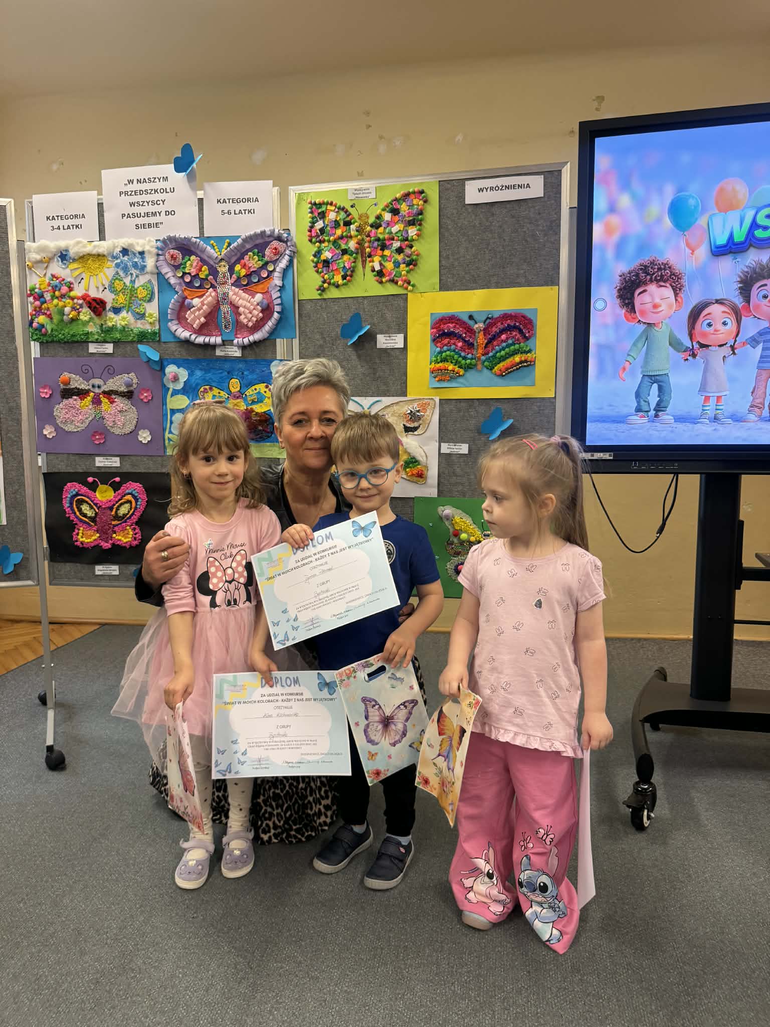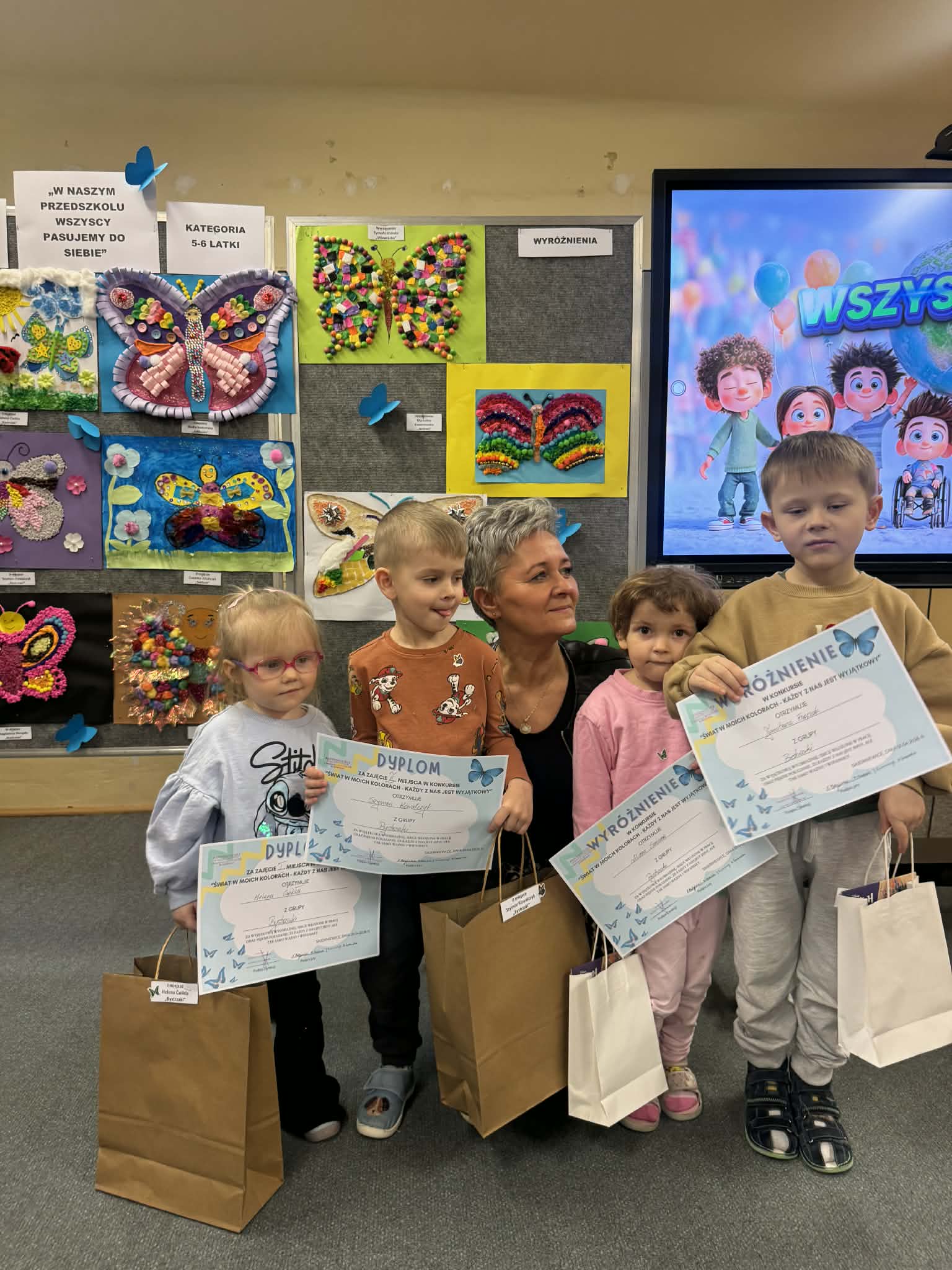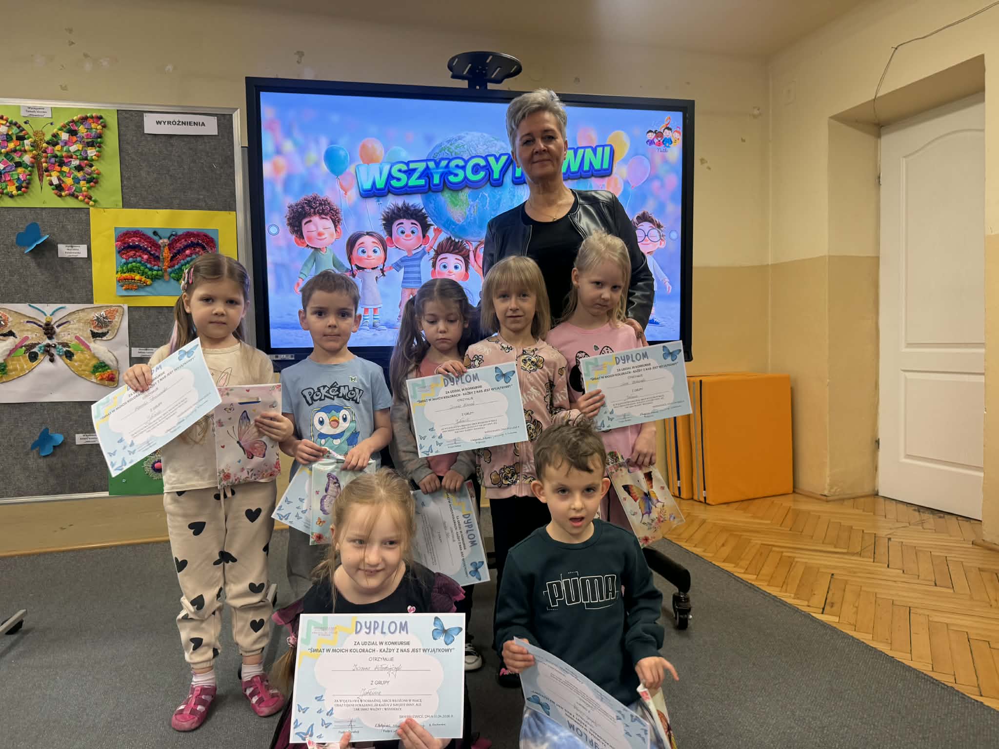W związku z obchodami Światowego Dnia Świadomości Autyzmu w naszym przedszkolu odbyło się uroczyste rozstrzygnięcie wyjątkowego konkursu plastycznego pod hasłem „Świat w moich kolorach – każdy z nas jest wyjątkowy”. Zadaniem uczestników było stworzenie sensorycznego motyla, który swoją formą i fakturą miał symbolizować różnorodność oraz piękno każdego człowieka.