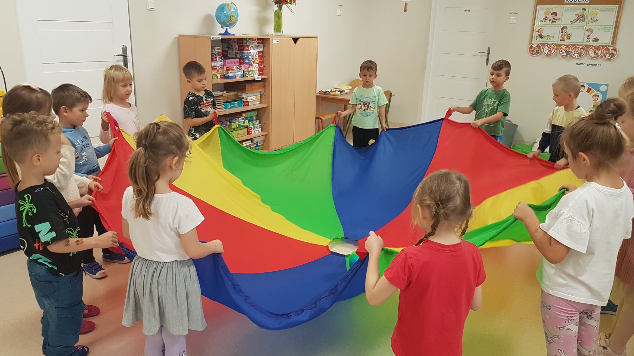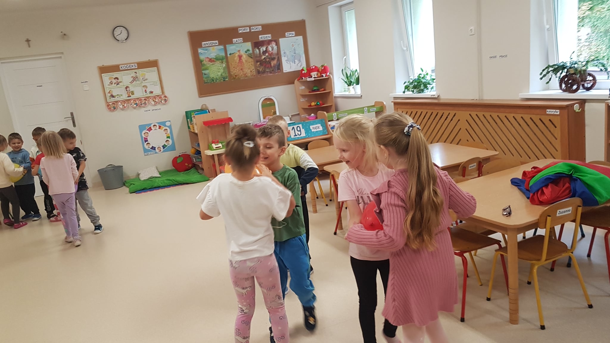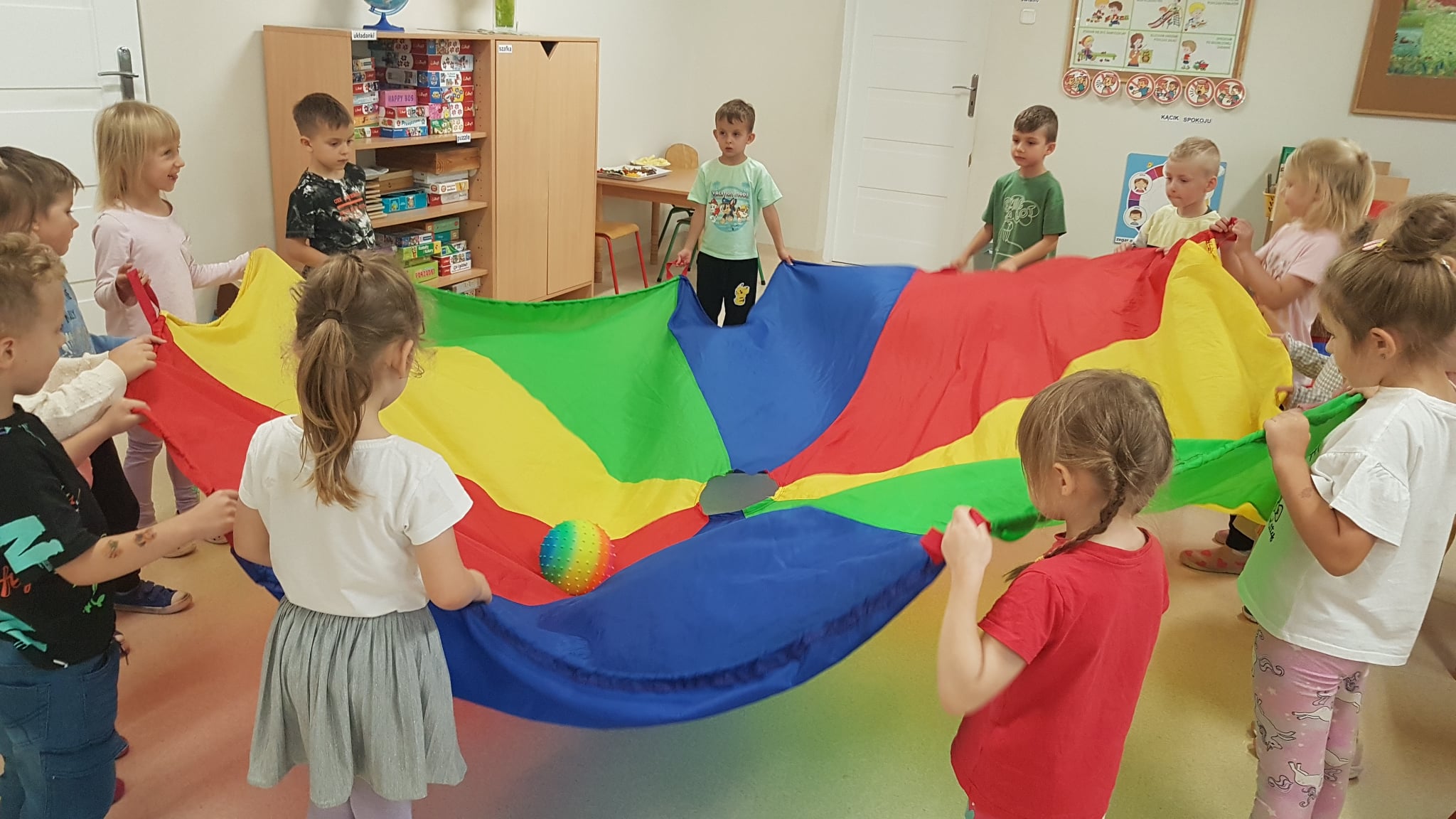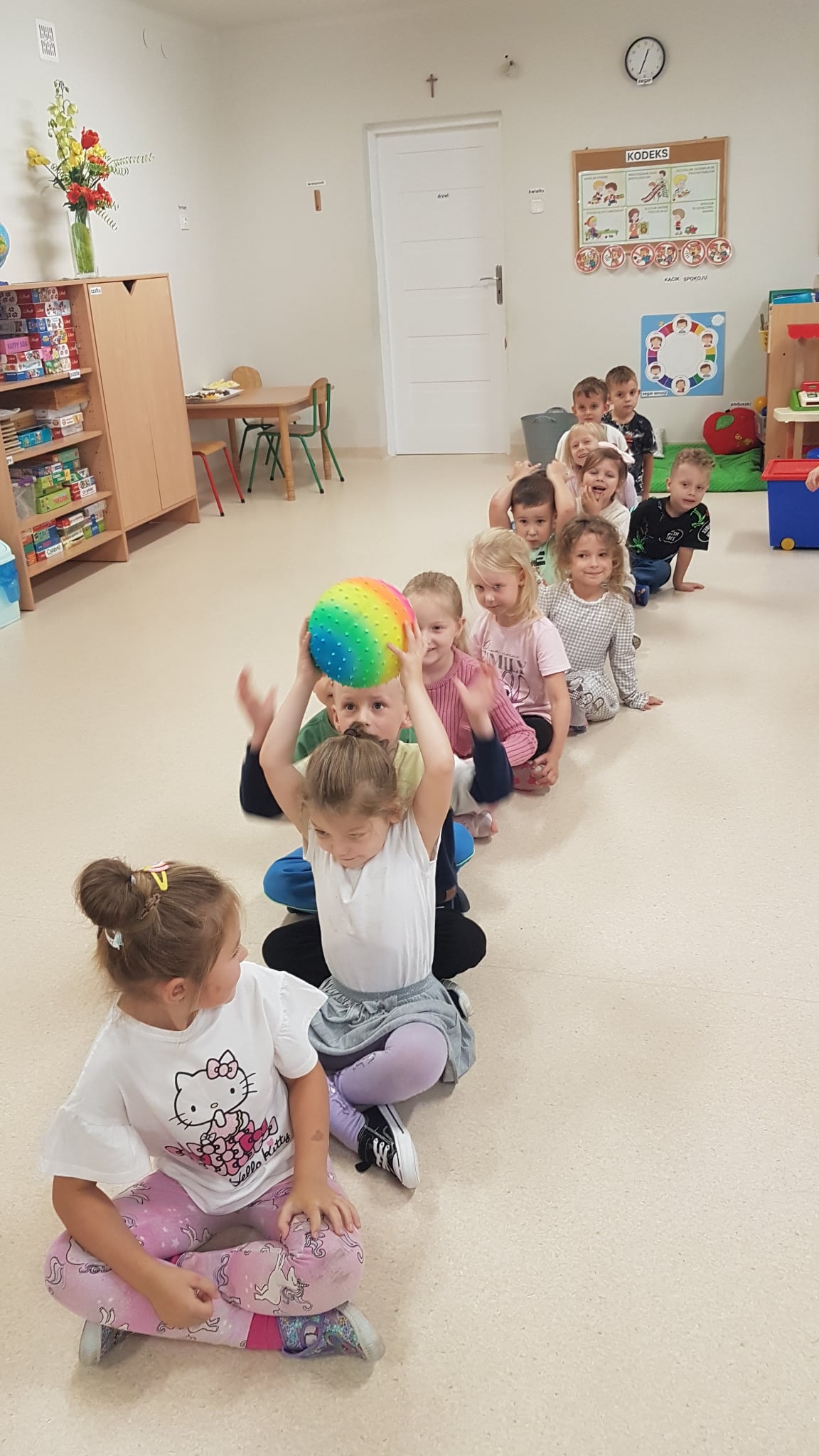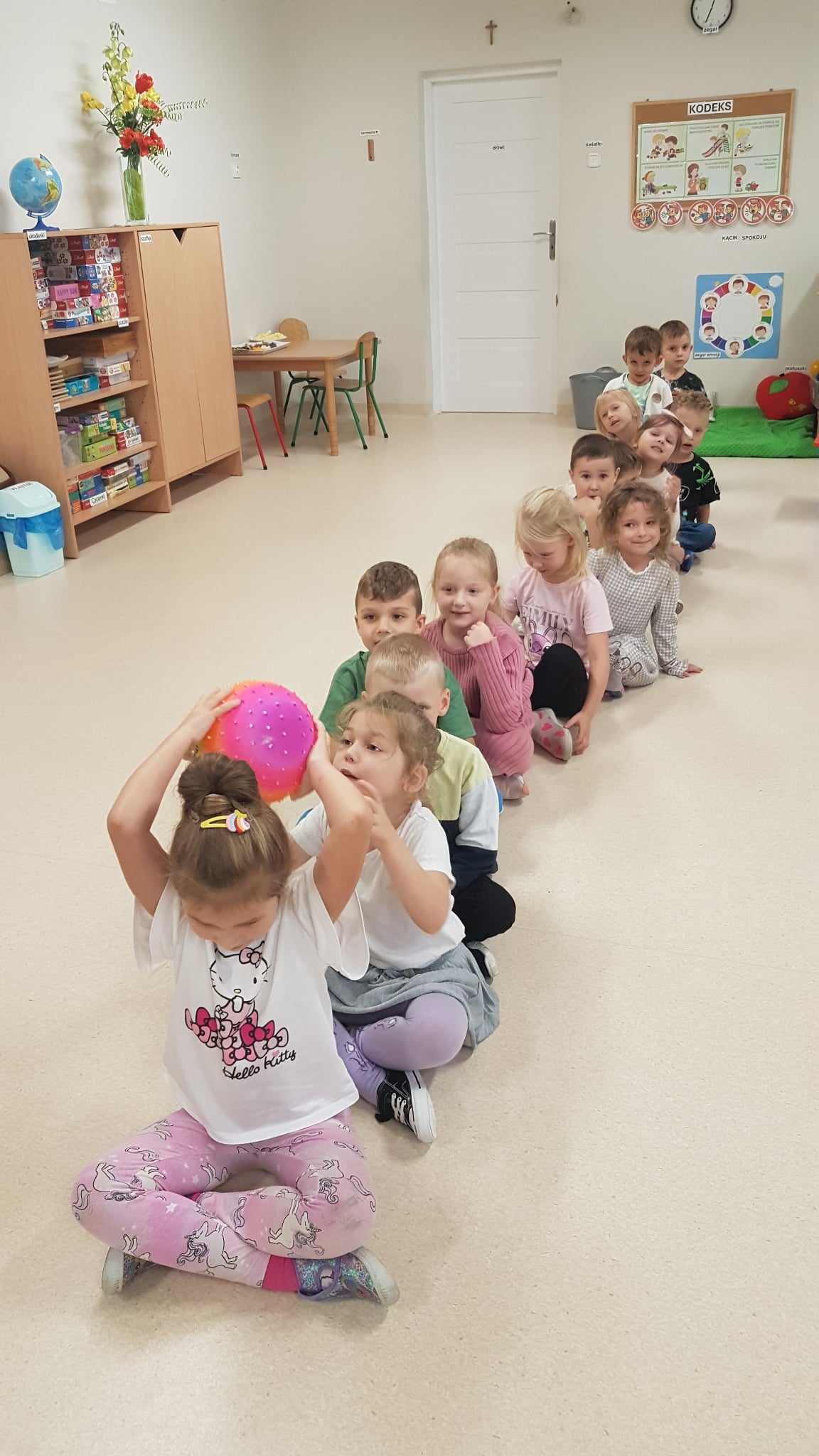 Dzieci z grupy „Jabłcusie” wzięły udział w wyjątkowych zajęciach ruchowych poprowadzonych przez Panią Olę. Spotkanie upłynęło pod znakiem aktywnej zabawy i ćwiczeń ogólnorozwojowych. Przedszkolaki z ogromnym zaangażowaniem uczestniczyły w zabawach z chustą oraz ćwiczyły na piłkach sensorycznych, które nie tylko bawią, ale też świetnie stymulują zmysły i koordynację. Na koniec czekały na nas wesołe gry z piłką. Było bardzo ciekawie, a atmosfera zajęć sprawiła, że uśmiechy nie schodziły nam z twarzy!