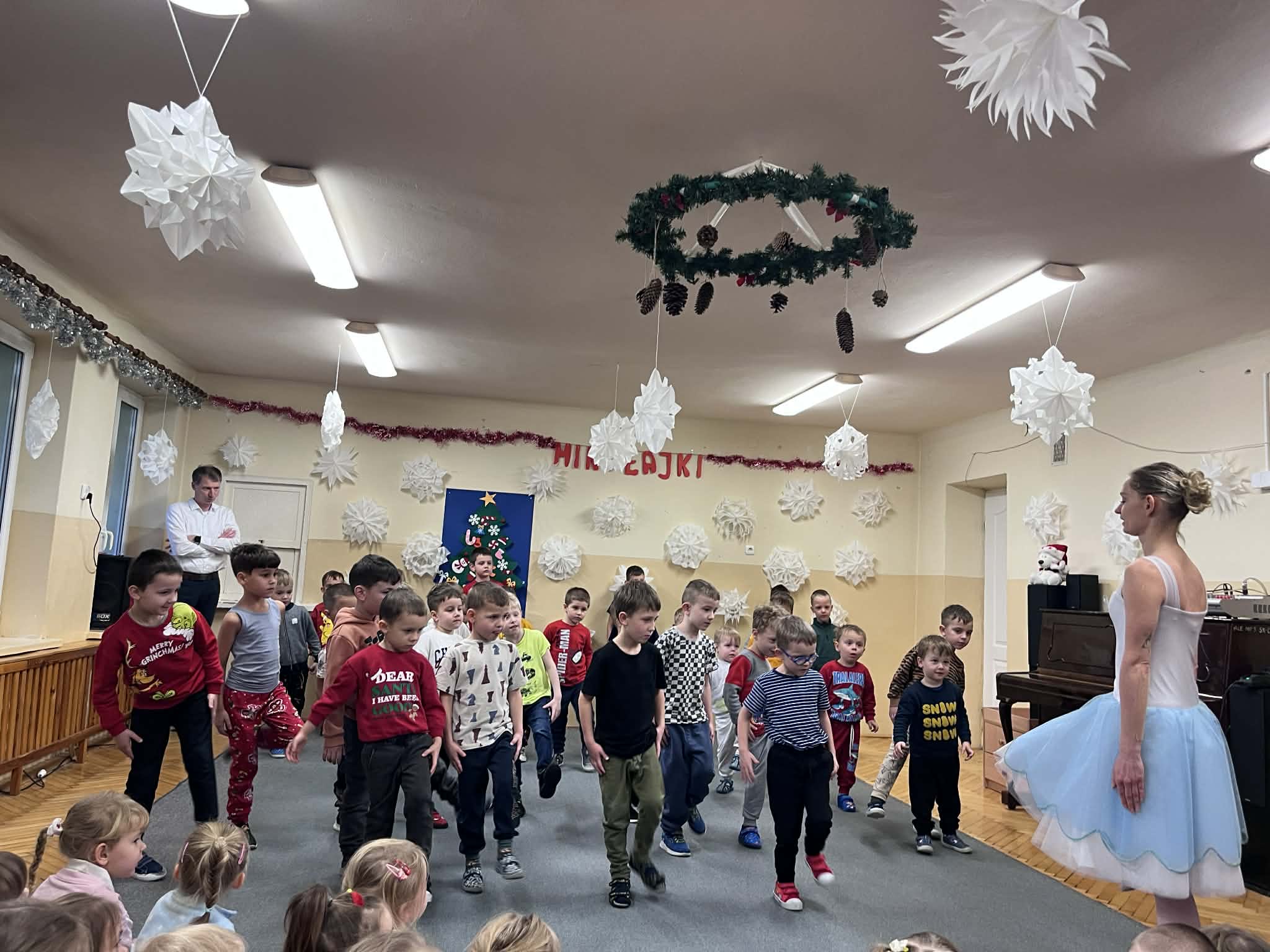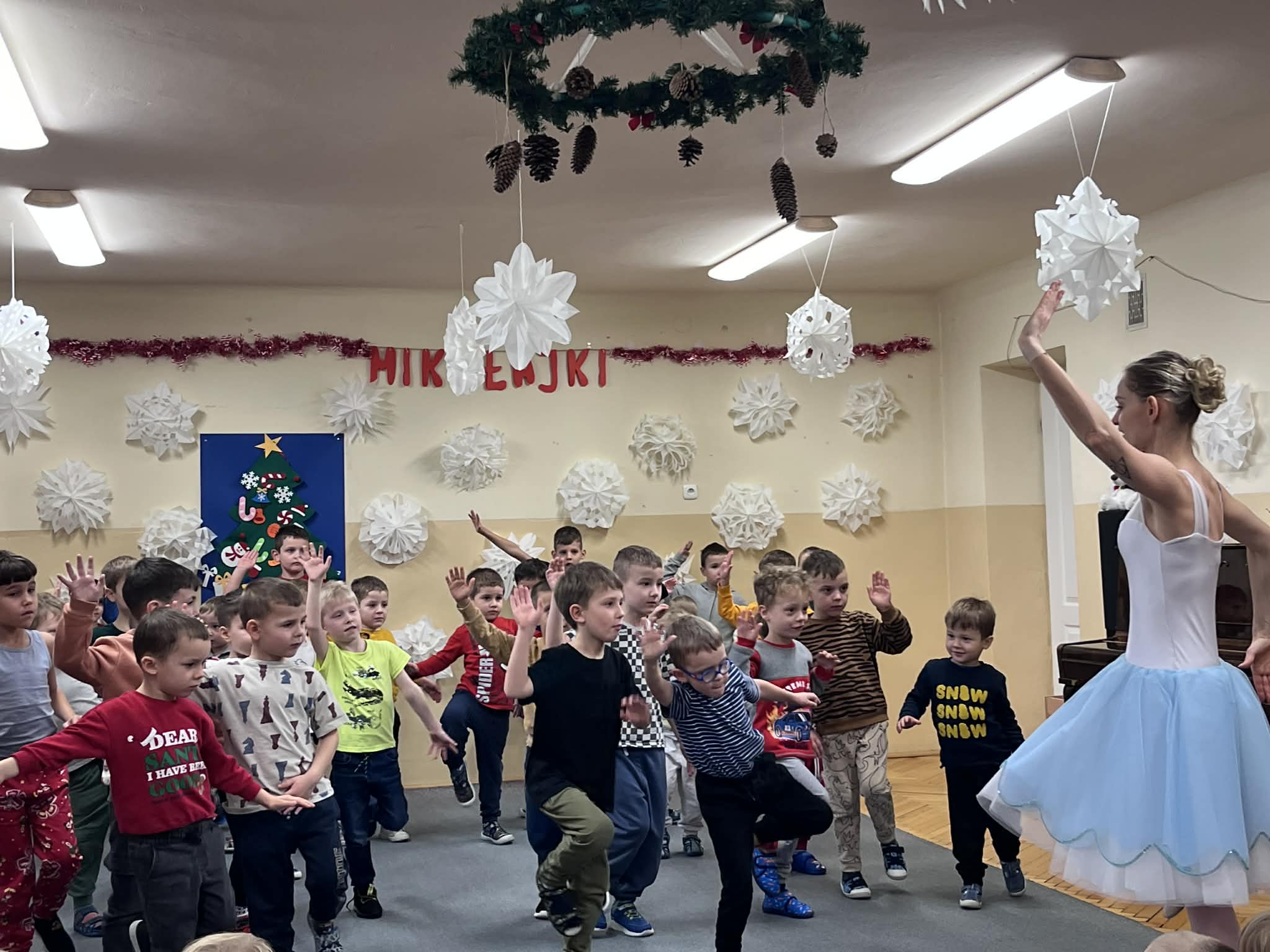 W ubiegły piątek nasze przedszkole gościło grupę baletową! Artystki zaprezentowały zachwycające układy, a następnie zaprosiły dzieci do spróbowania swoich sił w krótkich choreografiach. Mali tancerze poradzili sobie świetnie! Był to dzień pełen piękna i inspiracji, który na długo zostanie w naszej pamięci.