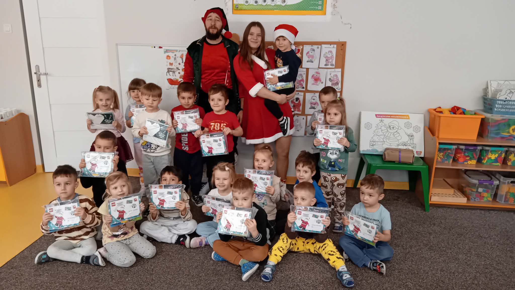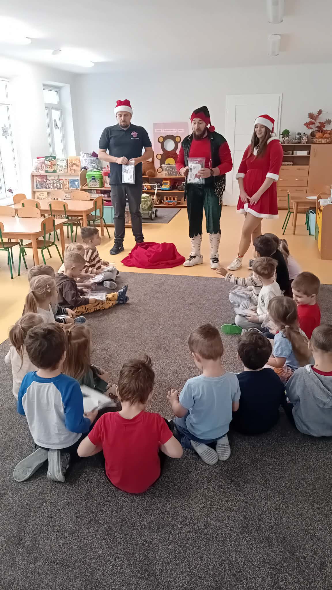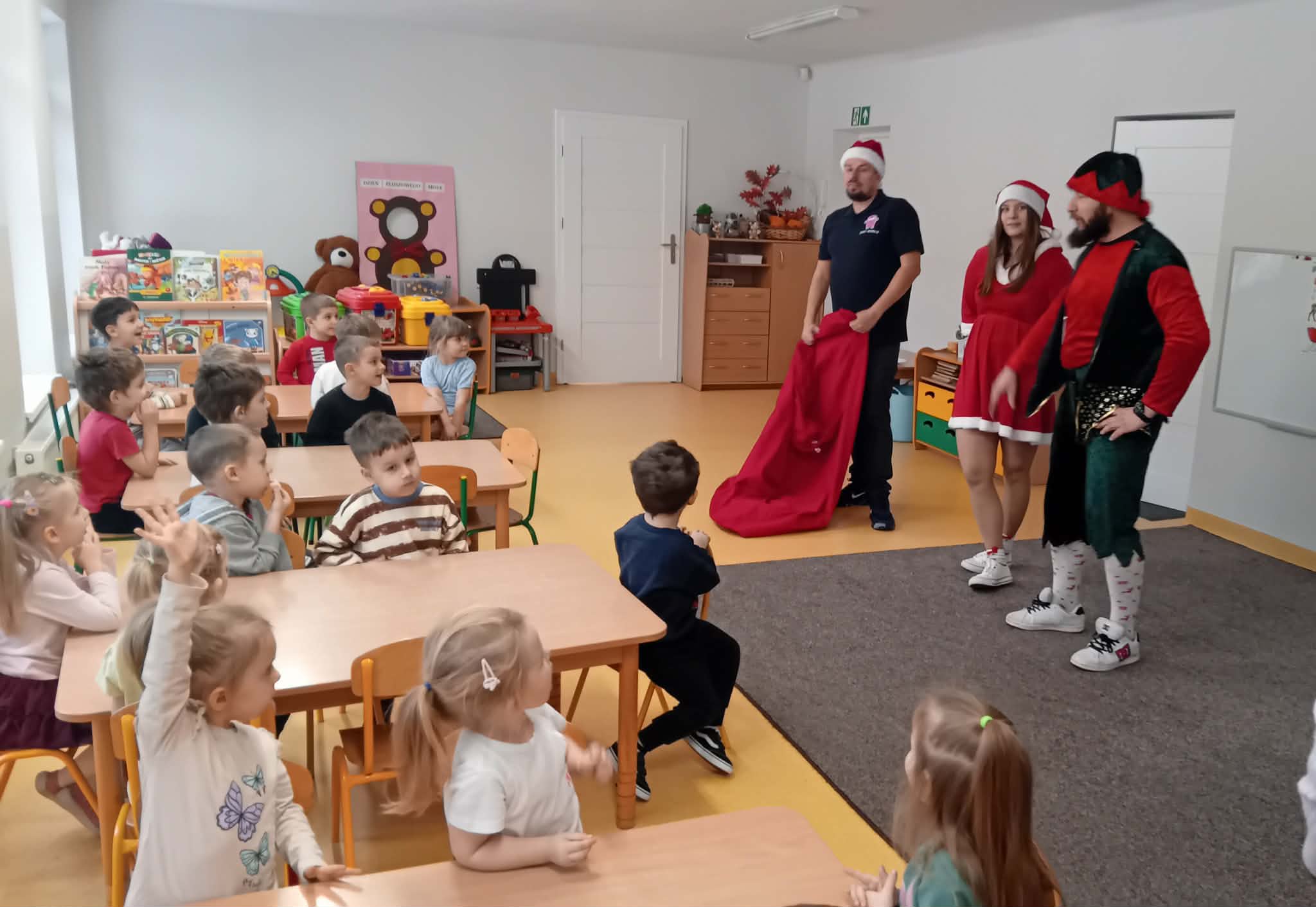 Kilka dni przed Mikołajkami, nasze przedszkolaki odwiedziły wyjątkowe Elfy z hurtowni zabawek w Skierniewicach. Wizyta odbyła się w ramach radosnej akcji świątecznej przygotowanej z myślą o naszych podopiecznych. Podczas spotkania dzieci otrzymały specjalne formularze listów do Świętego Mikołaja. Dzięki nim każdy przedszkolak będzie mógł opisać swoje marzenia oraz wskazać prezenty, które chciałby znaleźć pod choinką.