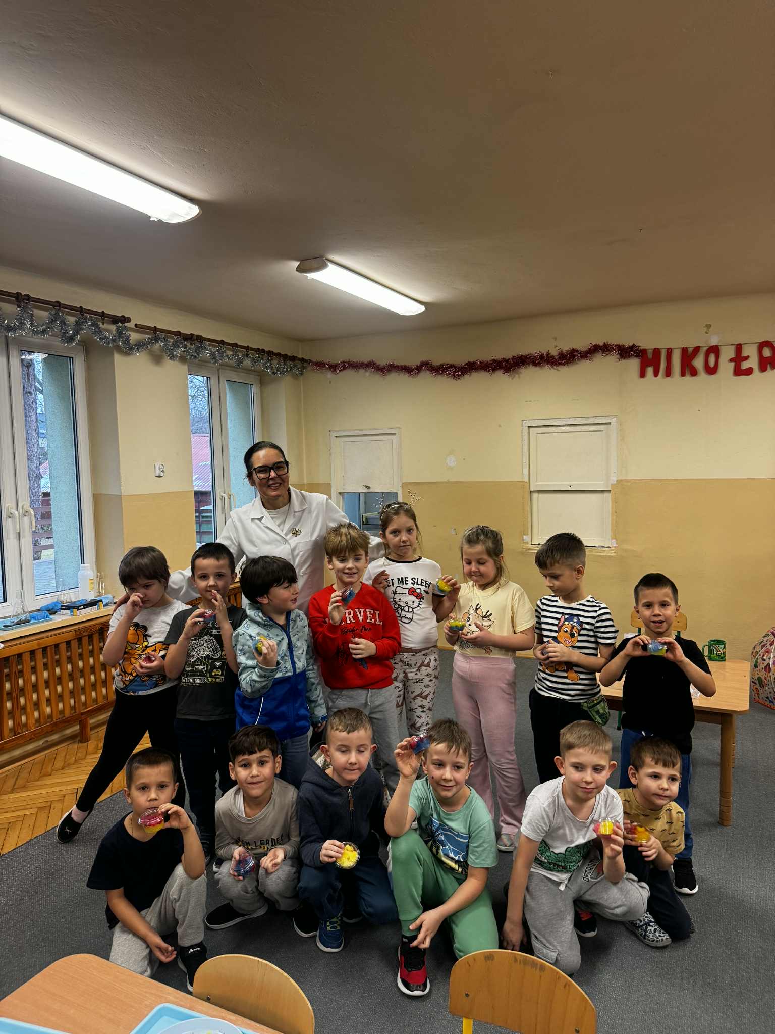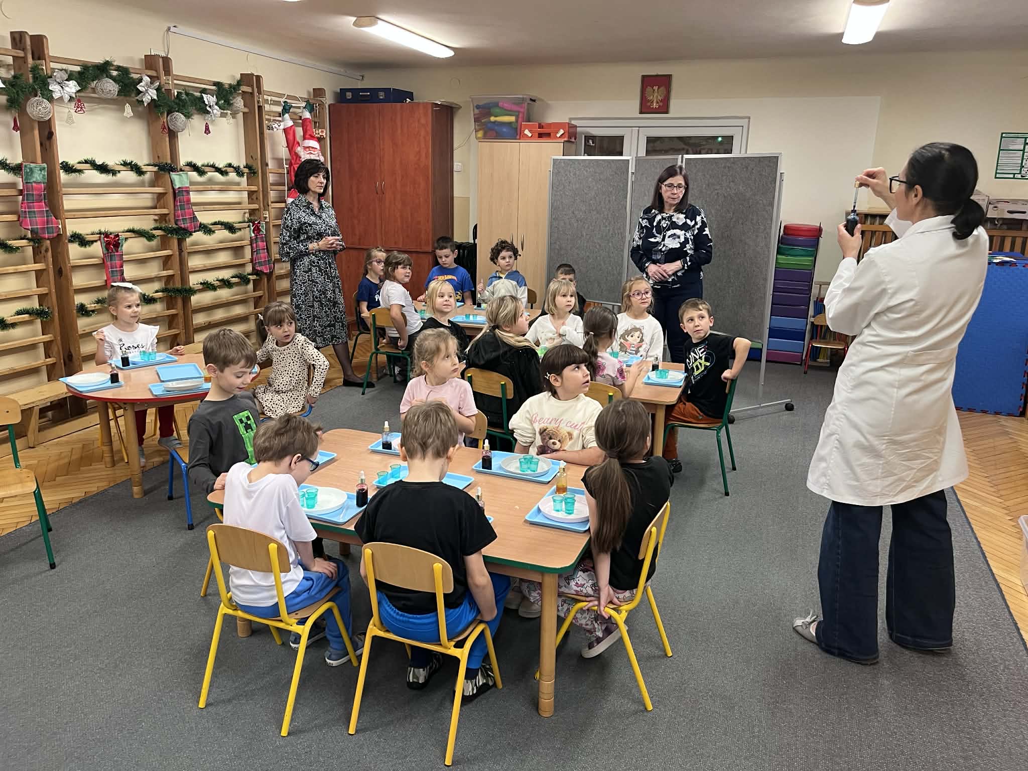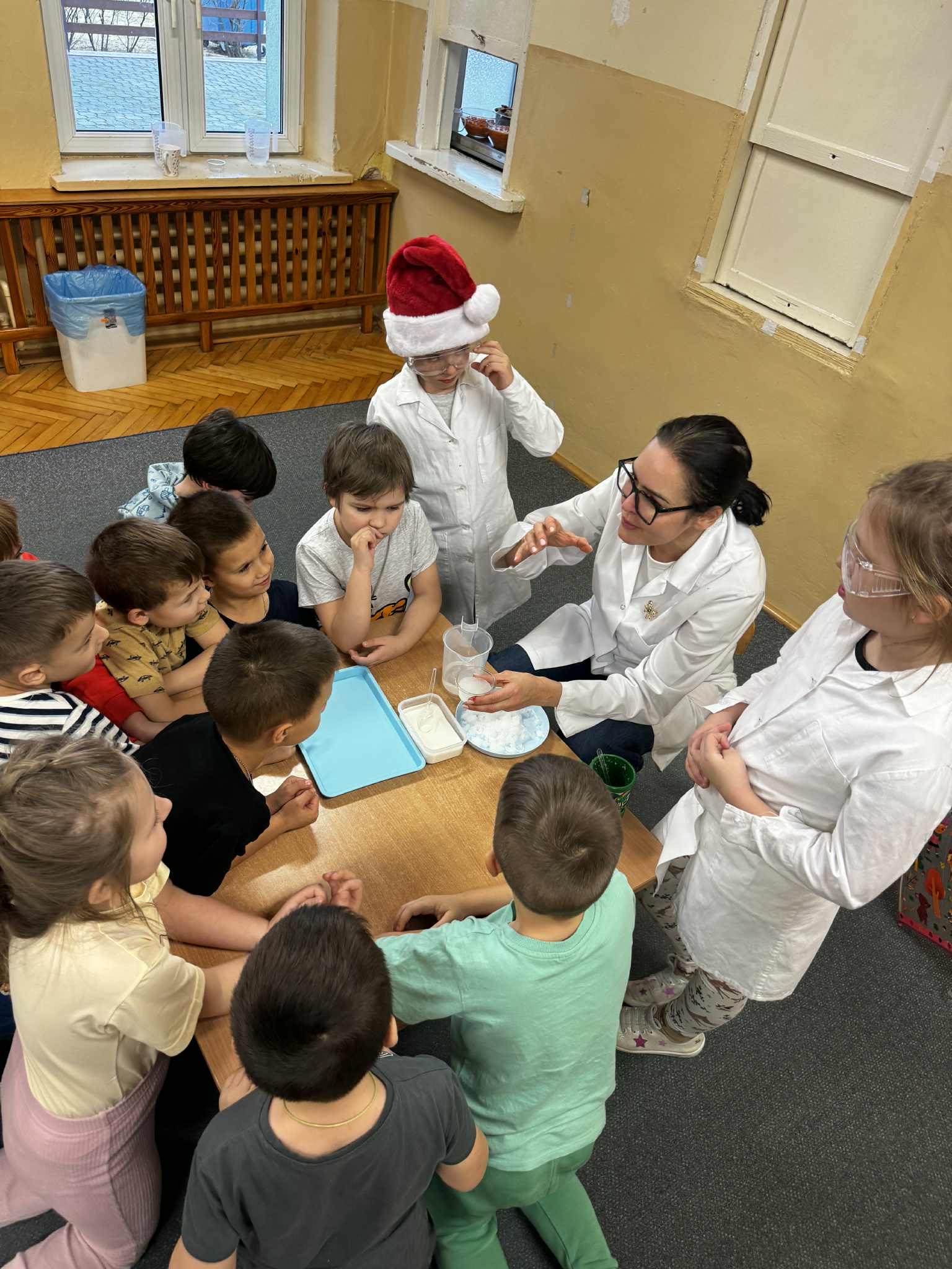 W przedszkolu odbyły się fascynujące warsztaty chemiczne. Dzieci poznały tajniki nauki poprzez ciekawe doświadczenia i wykonały samodzielnie sztuczny śnieg. Nasz śnieg był wyjątkowy, bo kolorowy, co wzbudziło ogromną radość! Każdy przedszkolak mógł zabrać swoje puszyste, chemiczne dzieło do domu. To była wspaniała zabawa połączona z nauką!