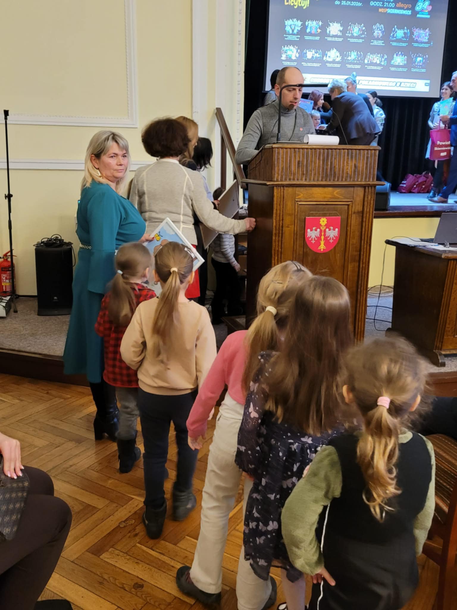 Finał akcji miał swój wzruszający ciąg dalszy. Po oficjalnych uroczystościach w Starostwie Powiatowym, goście przenieśli się do progów Centrum Kultury i Sztuki w Skierniewicach, gdzie odbył się uroczysty wernisaż prac powstałych w ramach tej wyjątkowej inicjatywy. To był moment pełen dumy i emocji. Wszyscy uczestnicy, ich rodzice oraz zaproszeni goście mogli po raz pierwszy podziwiać efekty wielogodzinnej pracy warsztatowej. Ściany CEKiS wypełniły się kolorami, które niosą realną pomoc. Niezwykłym elementem tegorocznej edycji była możliwość pracy pod okiem profesjonalistów, którzy podzielili się swoim talentem i wrażliwością. Podczas wernisażu obecne były osoby, bez których ten projekt nie miałby tak wysokiego poziomu artystycznego. Magdalena Popovics – artystka, która czuwała nad procesem twórczym i pomagała uczestnikom przelać emocje na płótno. Magdalena Rdest-Nowak – znana fotografka, która swoim czujnym okiem dokumentowała te magiczne chwile, zatrzymując dobro w kadrze. Dorina Remiszewska – serce i silnik całego przedsięwzięcia, organizatorka akcji, która po raz kolejny z sukcesem zjednoczyła lokalne środowiska. Iwona Górniak – Wiceprezydent Miasta Skierniewice, która swoją obecnością podkreśliła rangę wydarzenia i wsparcie samorządu dla inicjatyw charytatywnych.