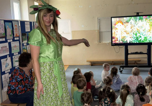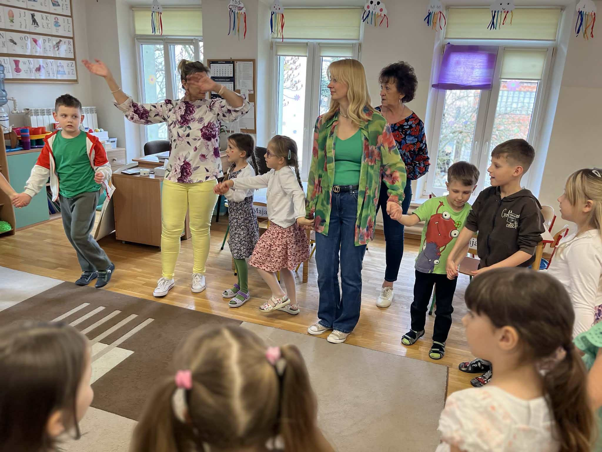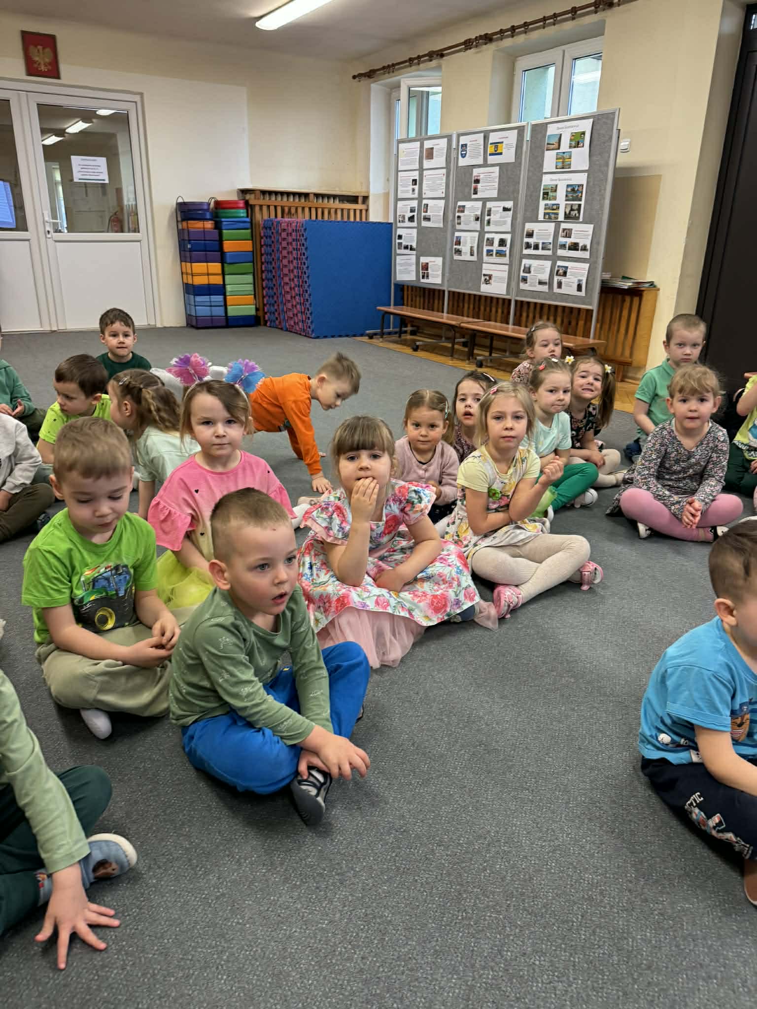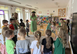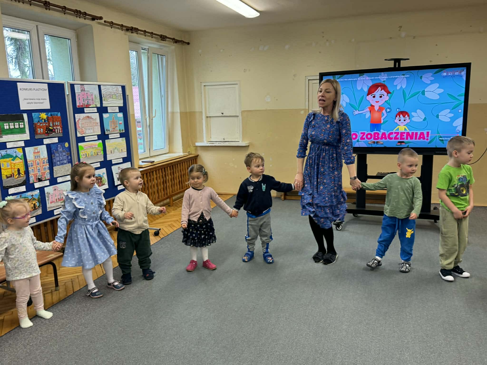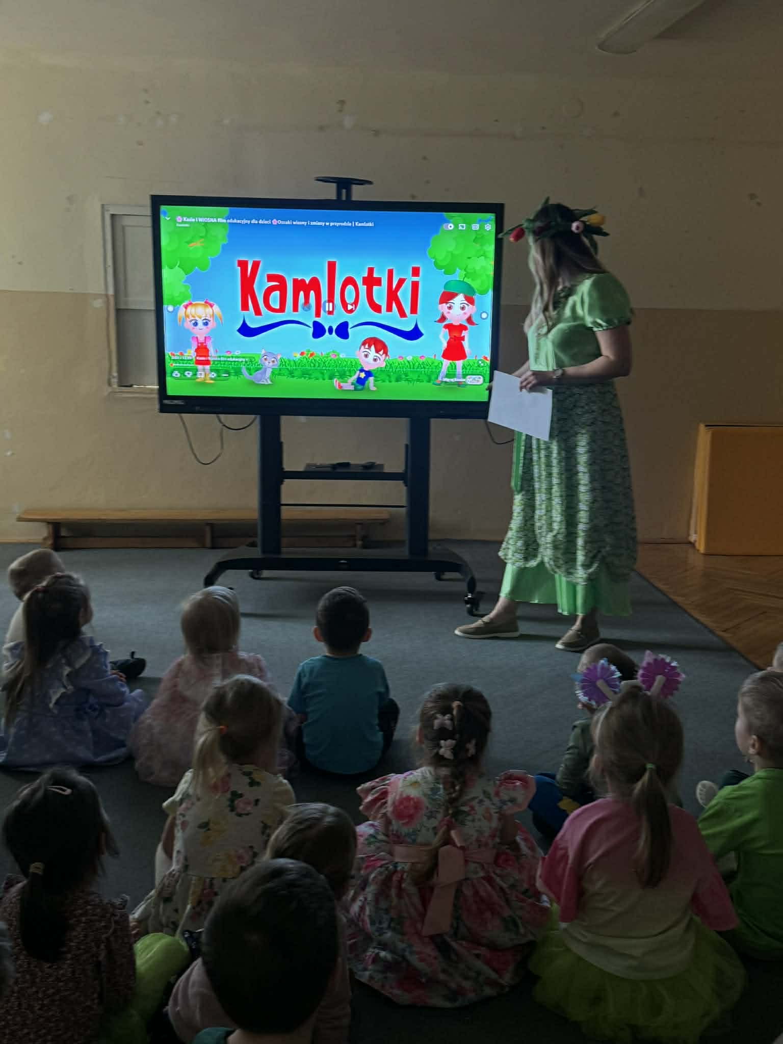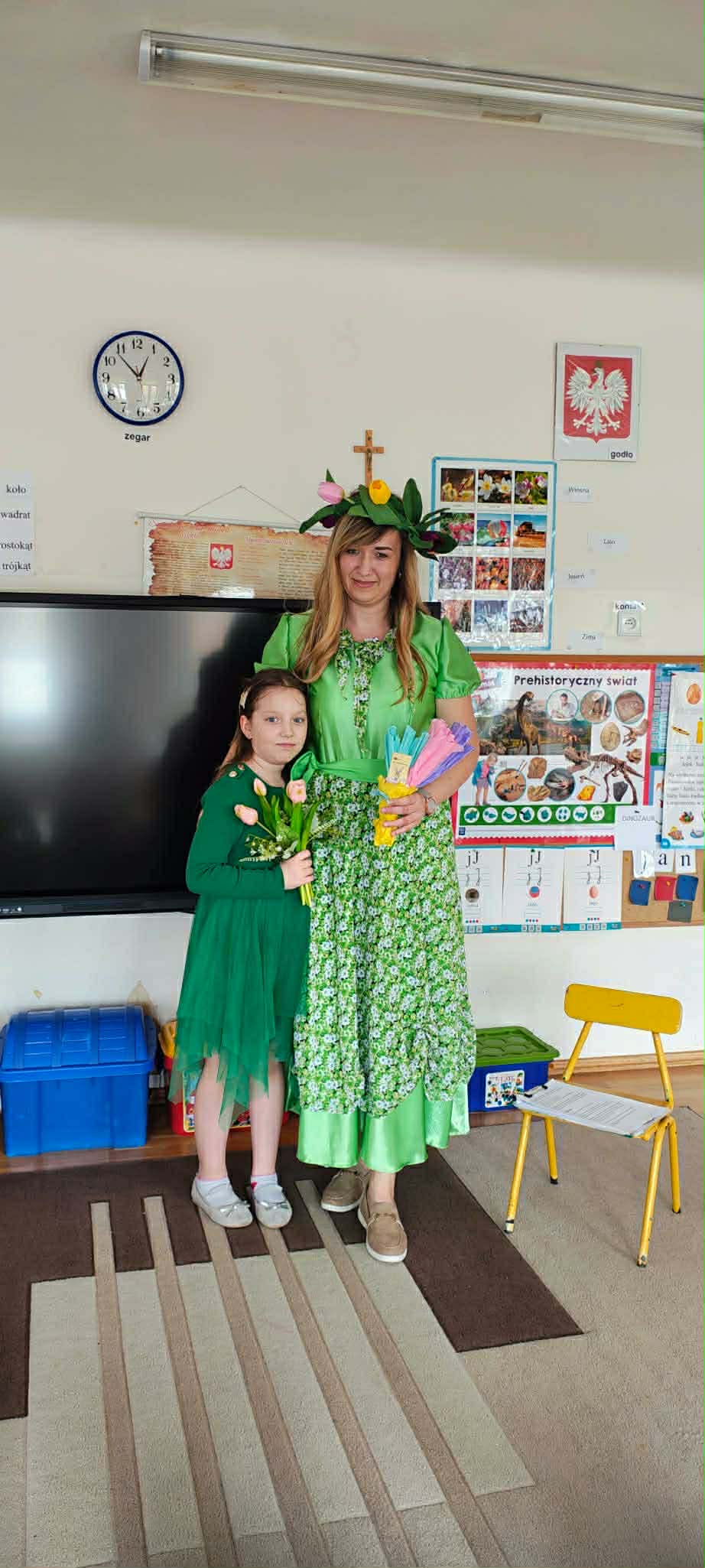 Dziś w naszym przedszkolu zrobiło się wyjątkowo zielono i radośnie – odwiedziła nas długo wyczekiwana Pani Wiosna! Choć za oknem bywa różnie, w naszych salach rozkwitły uśmiechy i zapanowała prawdziwie słoneczna atmosfera. Nasze najmłodsze przedszkolaki z grup „Bystrzaki” oraz „Biedronki” wspólnie świętowały ten dzień na sali gimnastycznej. Dzieci bawiły się wyśmienicie, wykazując się przy tym ogromną wiedzą – bezbłędnie odgadywały wiosenne zagadki! Nie zabrakło też radosnych śpiewów i tańców przy dźwiękach najpiękniejszych wiosennych piosenek. Na starsze grupy również czekała niezwykła wizyta Pani Wiosny. Dzieci z dumą prezentowały gościowi swoje talenty – recytowały wiersze i śpiewały piosenki o budzącej się do życia przyrodzie. Pani Wiosna przygotowała dla nich nie lada wyzwanie: wspólne rozwiązywanie krzyżówek! Starszaki poradziły sobie śpiewająco, wykazując się sprytem i wiedzą. Oczywiście nie obyło się bez radosnych, wspólnych zabaw ruchowych, które zintegrowały wszystkie dzieci. Na zakończenie spotkania każda grupa wykonała pamiątkowe zdjęcia z naszą wyjątkową towarzyszką. Dzieci z ogromnym entuzjazmem przyjęły Panią Wiosnę w naszych progach. Teraz wszyscy – mali i duzi – z niecierpliwością czekamy, aż pogoda za oknem również stanie się w pełni wiosenna!