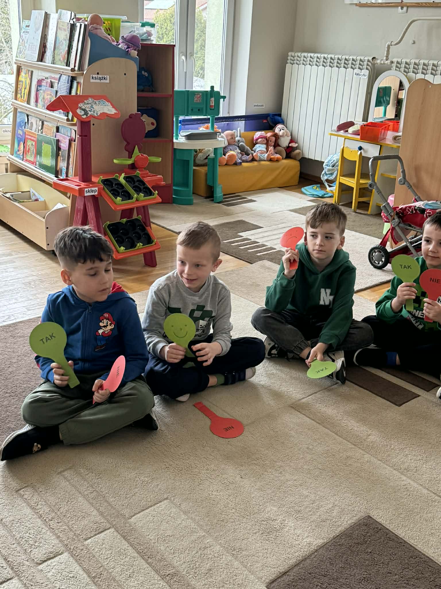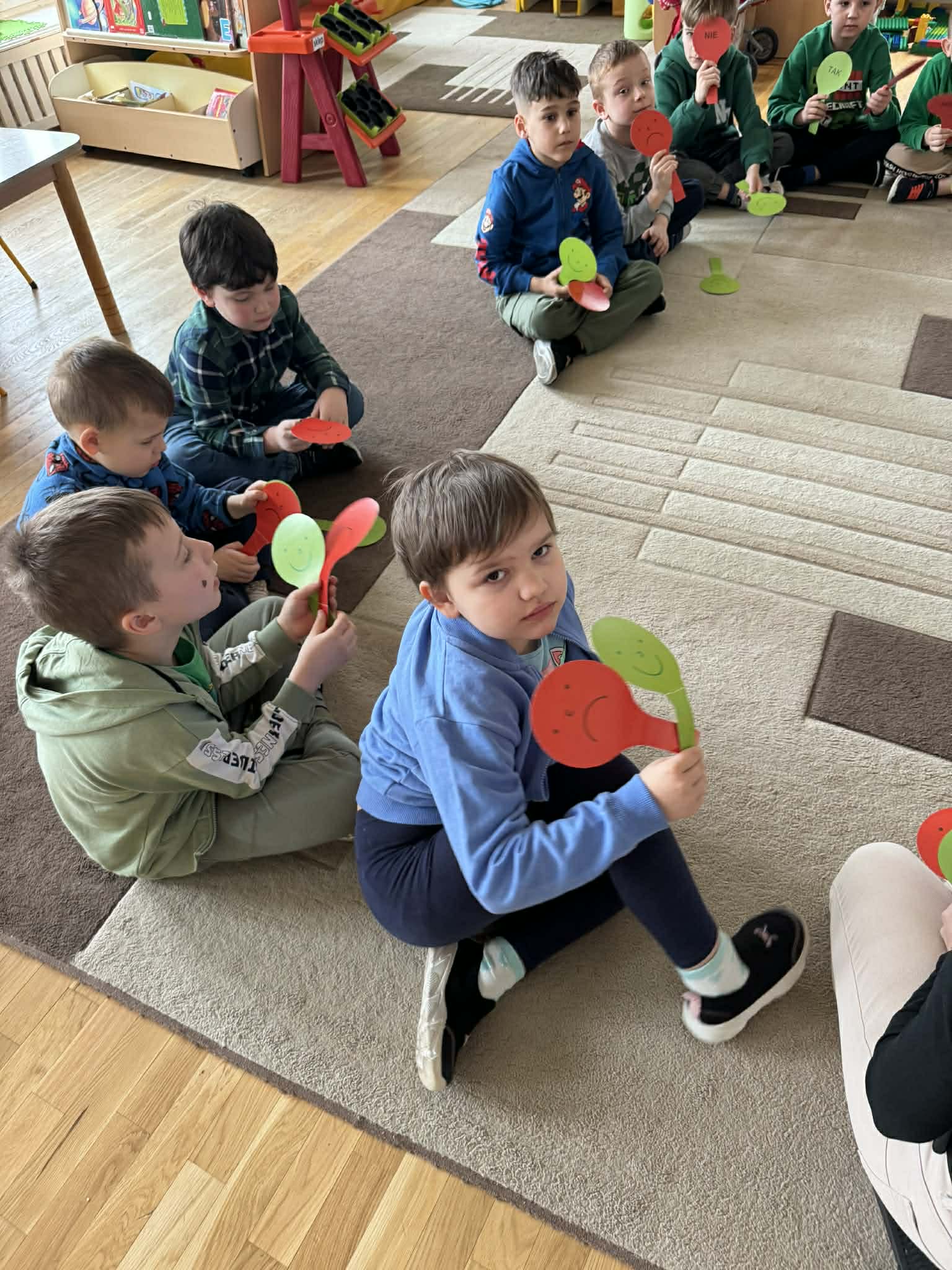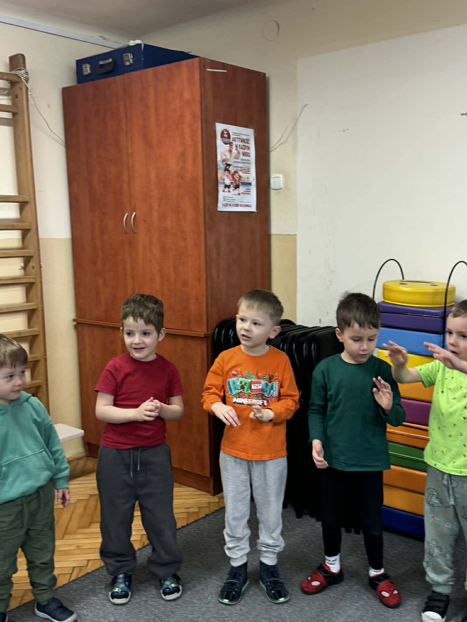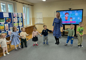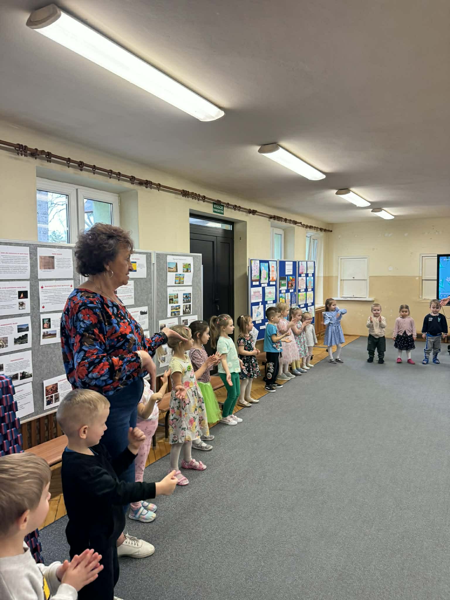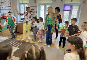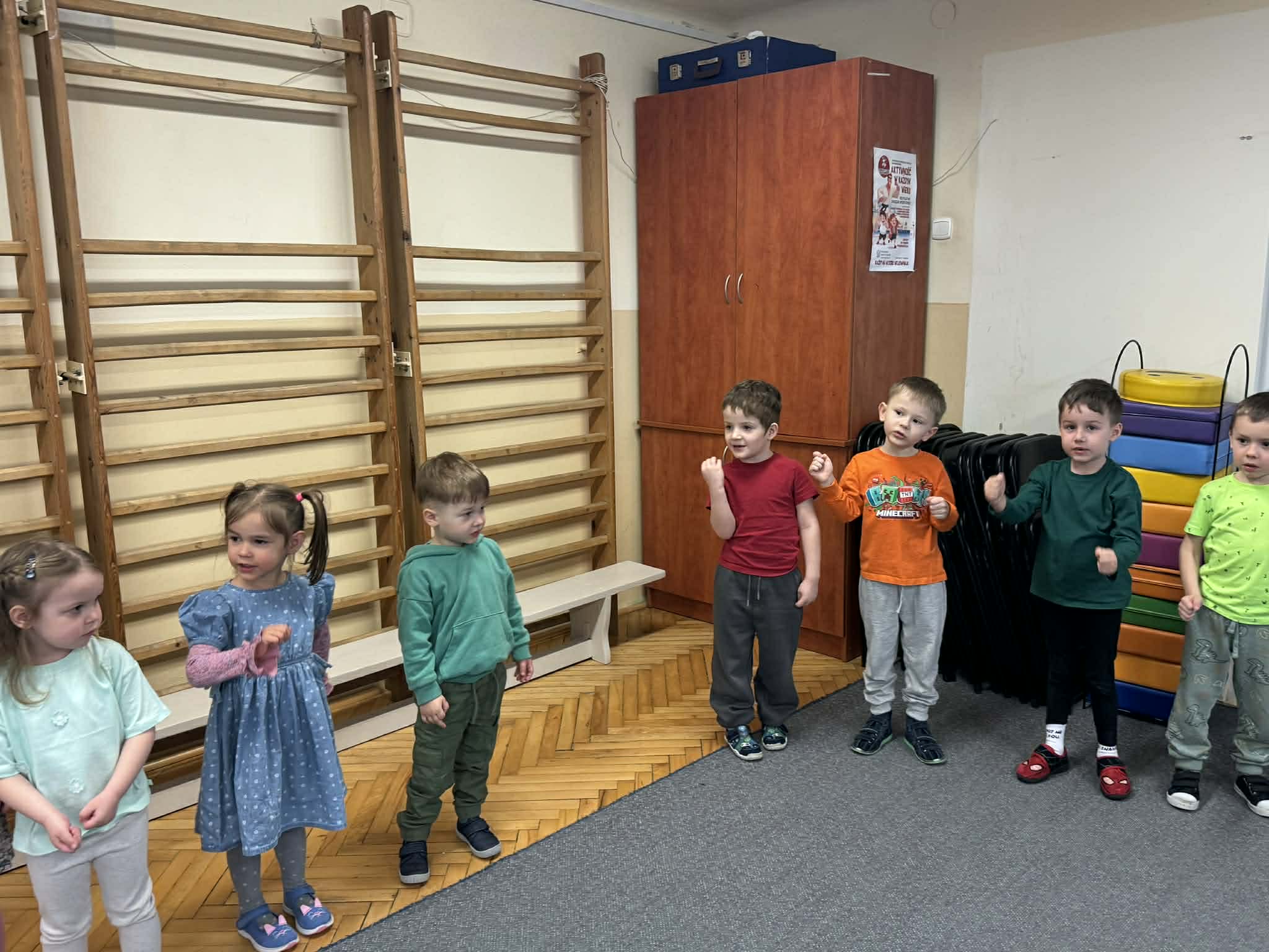 Dziś w naszym przedszkolu zrobiło się wyjątkowo zielono i radośnie – odwiedziła nas długo wyczekiwana Pani Wiosna! Choć za oknem bywa różnie, w naszych salach rozkwitły uśmiechy i zapanowała prawdziwie słoneczna atmosfera. Nasze najmłodsze przedszkolaki z grup „Bystrzaki” oraz „Biedronki” wspólnie świętowały ten dzień na sali gimnastycznej. Dzieci bawiły się wyśmienicie, wykazując się przy tym ogromną wiedzą – bezbłędnie odgadywały wiosenne zagadki! Nie zabrakło też radosnych śpiewów i tańców przy dźwiękach najpiękniejszych wiosennych piosenek. Na starsze grupy również czekała niezwykła wizyta Pani Wiosny. Dzieci z dumą prezentowały gościowi swoje talenty – recytowały wiersze i śpiewały piosenki o budzącej się do życia przyrodzie. Pani Wiosna przygotowała dla nich nie lada wyzwanie: wspólne rozwiązywanie krzyżówek! Starszaki poradziły sobie śpiewająco, wykazując się sprytem i wiedzą. Oczywiście nie obyło się bez radosnych, wspólnych zabaw ruchowych, które zintegrowały wszystkie dzieci. Na zakończenie spotkania każda grupa wykonała pamiątkowe zdjęcia z naszą wyjątkową towarzyszką. Dzieci z ogromnym entuzjazmem przyjęły Panią Wiosnę w naszych progach. Teraz wszyscy – mali i duzi – z niecierpliwością czekamy, aż pogoda za oknem również stanie się w pełni wiosenna!