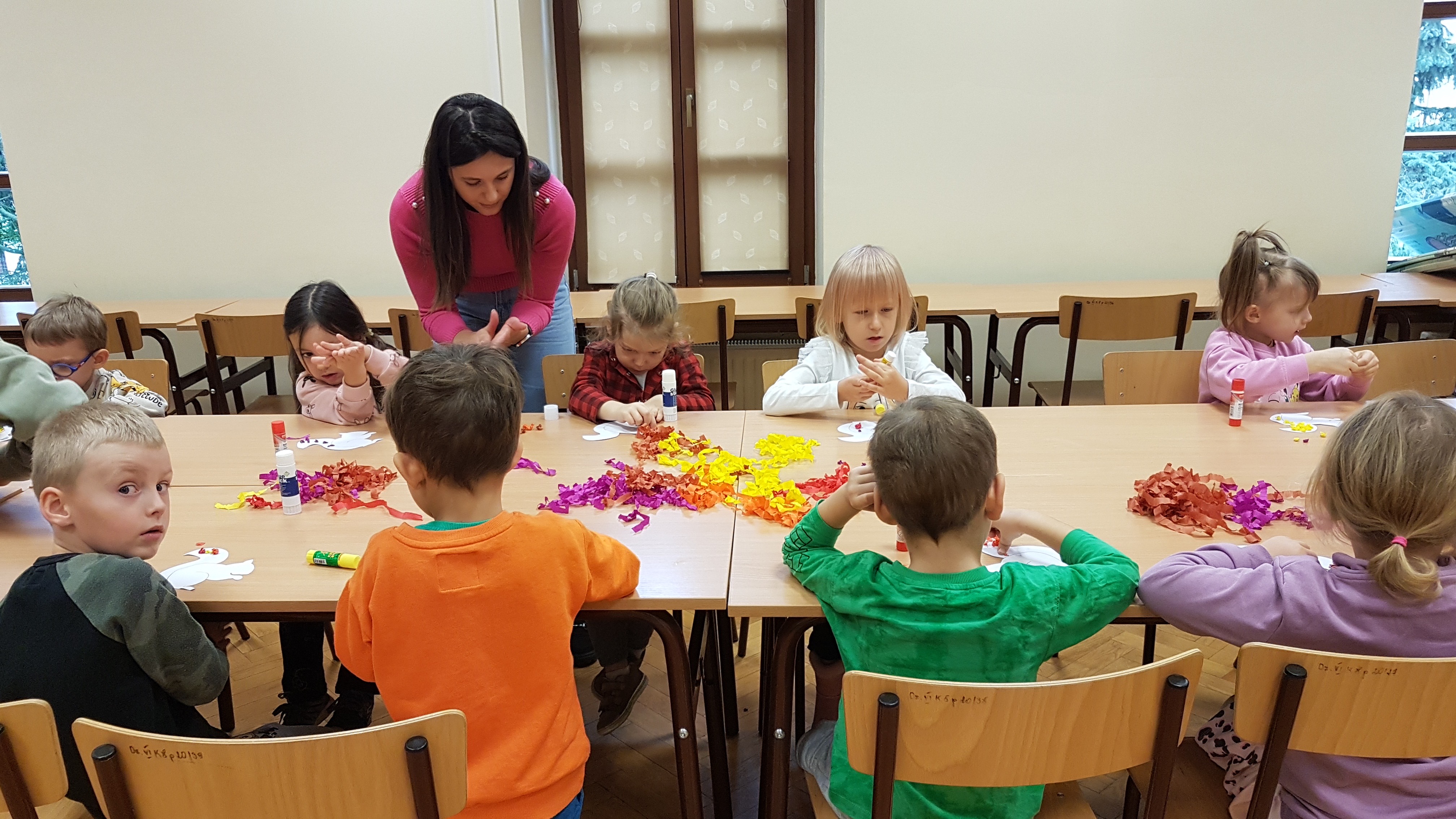 Dzieci z grupy „Jabłcusie” wzięły udział w jesiennych zajęciach bibliotecznych o charakterze plastycznym. Przedszkolaki z dużym zaangażowaniem wykonywały prace inspirowane jesienną tematyką, rozwijając swoją kreatywność oraz sprawność manualną. Zajęcia były okazją do twórczego działania, poznawania biblioteki oraz wspólnego spędzania czasu w miłej, spokojnej atmosferze.